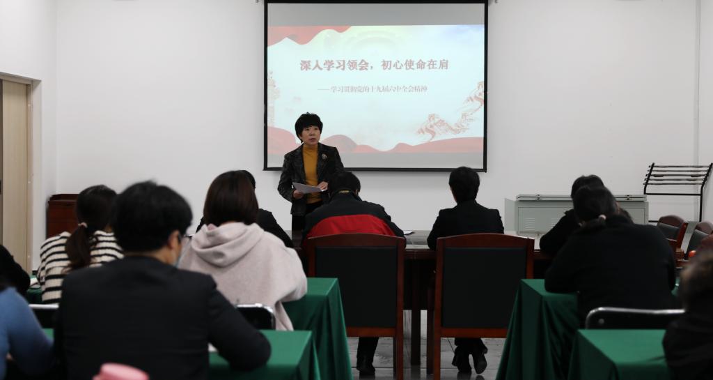 12月23日下午,副院长黄淑敏到管理系宣讲党的十九届六中全会精神,为全体教工党员和学生党员、入党积极分子代表上了一堂生动精彩的党课。