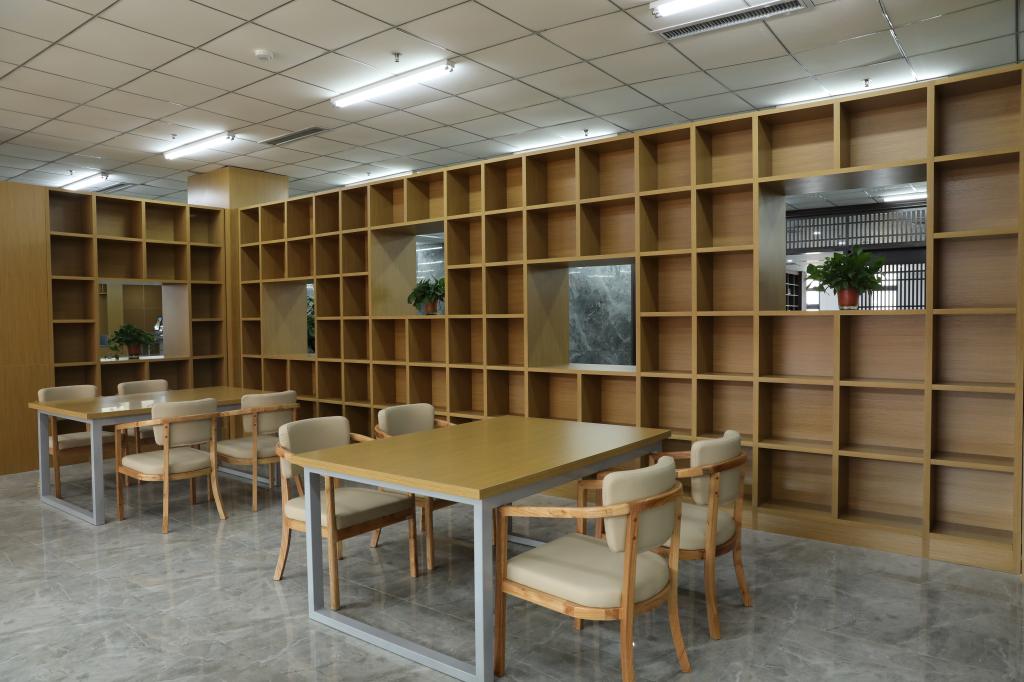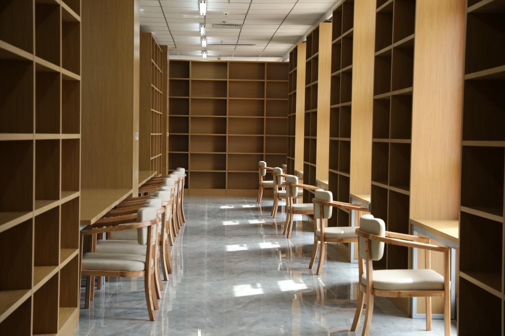 据了解,图书馆四楼是由世界杯官网传媒艺术系教师谷葳、孙增鲁共同设计并全程监督施工的,采用了以现代简约为主、新中式为辅的设计风格,通过古今融合,力求把最好的空间留给学生,最美的回忆留在图书馆。空间布局合理,书香氛围浓厚,处处传递着积极向上、隽秀典雅的精神和气质。