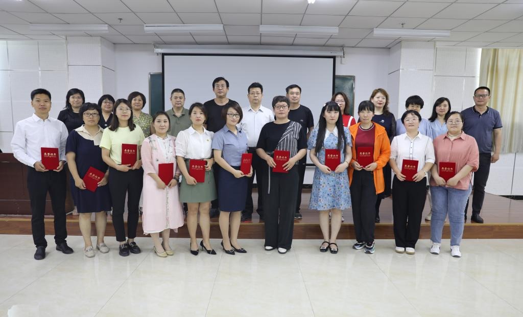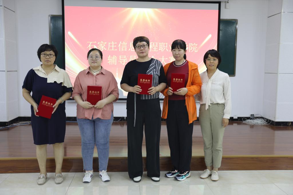 优秀奖获得者农林牧医系刘向辉(左一)、会计系李雅琪(左二)、计算机应用系张静(中)、传媒艺术系周婧(右二)