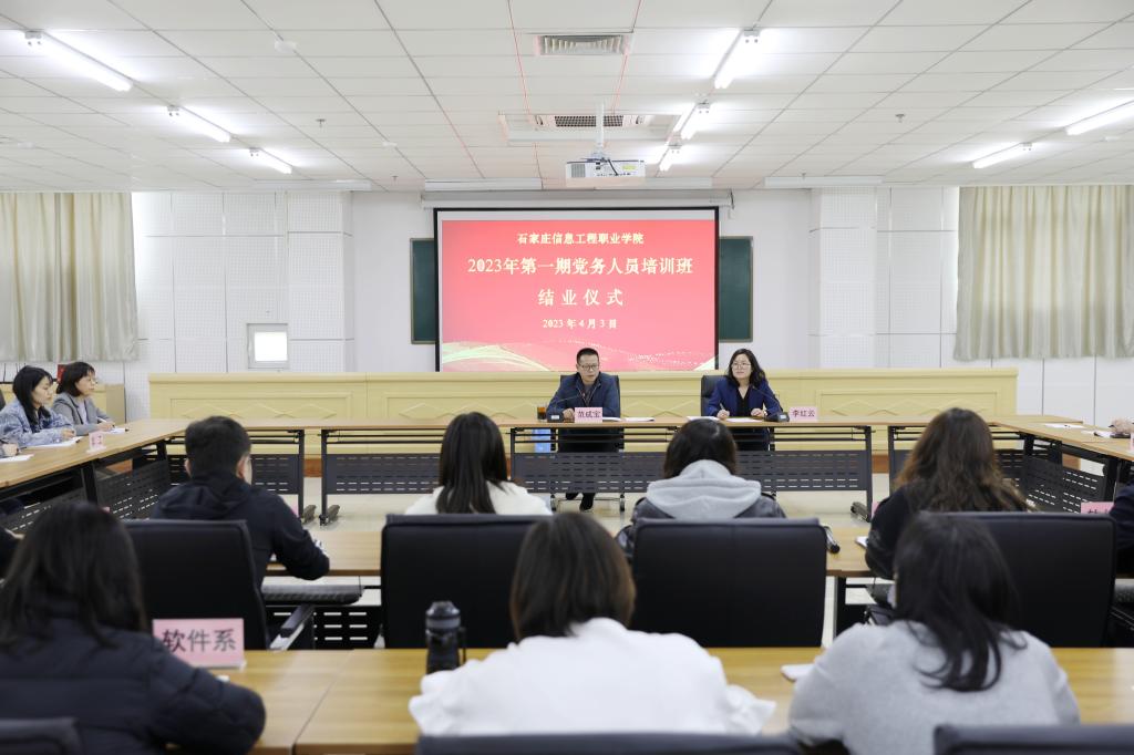 4月3日下午,世界杯官网2023年第一期党务人员培训班在启智楼二楼报告厅举行结业仪式。学院党委委员、组宣部部长范成宝出席结业仪式并讲话。