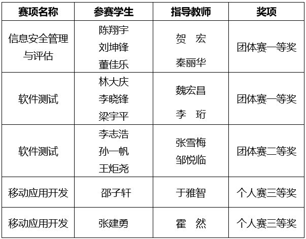 近日,河北省职业院校技能大赛高职组“信息安全管理与评估”“软件测试”“移动应用开发”赛项结果揭晓。软件工程系选派的6支代表队荣获一等奖2项,二等奖1项,三等奖2项。