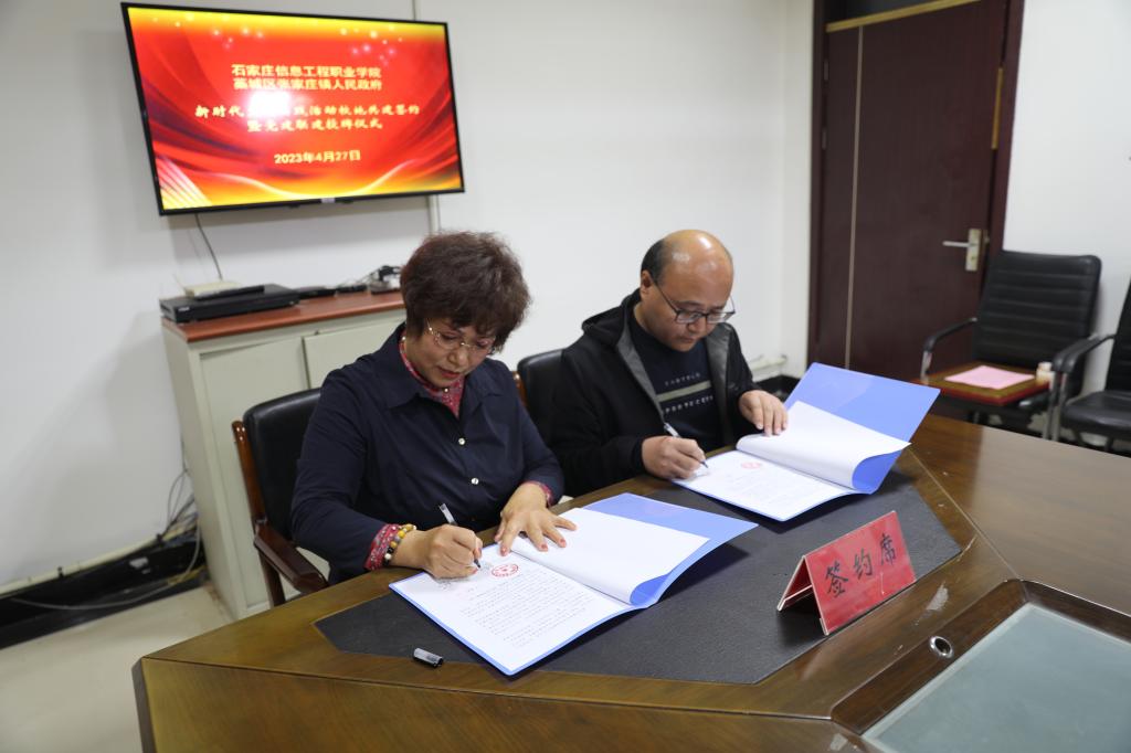 藁城区委常委、宣传部部长谢娇蕊介绍了作为全国新时代文明实践中心试点区在传统工艺产品方面的特色和优势,希望和学院各系各专业进行更深层次、更大范围的合作对接。藁城区委宣传部副部长赵志斌为网络与通信工程系党总支授牌。网络与通信工程系书记苏翠绵和藁城区张家庄镇党委副书记宋景华代表双方在《新时代文明实践活动校地共建意向书》上签字。下一步将通过共建活动平台、分享工作资源、交流工作经验、解决实际问题等途径,实现系部党的建设与驻地党委政府以及辖区各村街新时代文明实践活动互动,达到推动发展、服务群众、凝聚人心、促进和谐的目标要求。