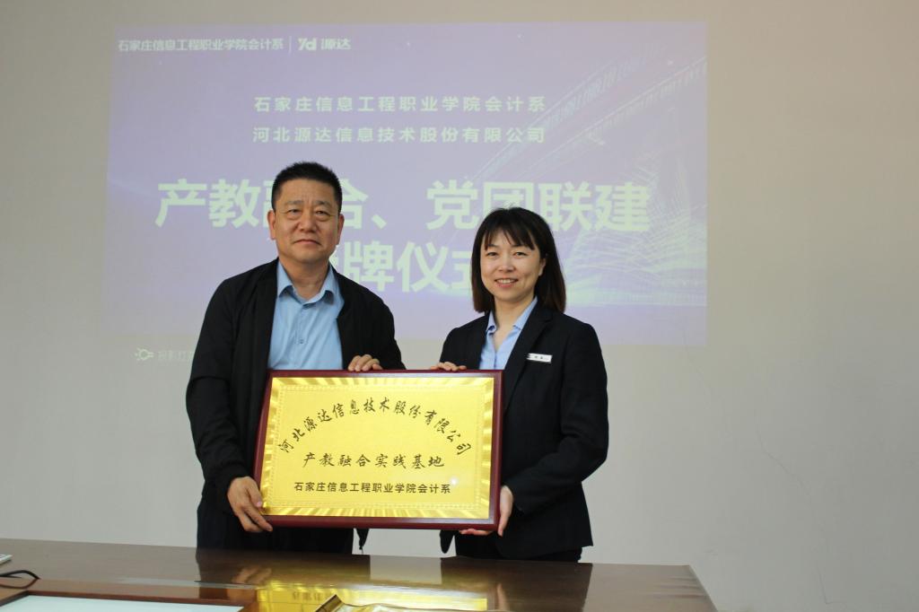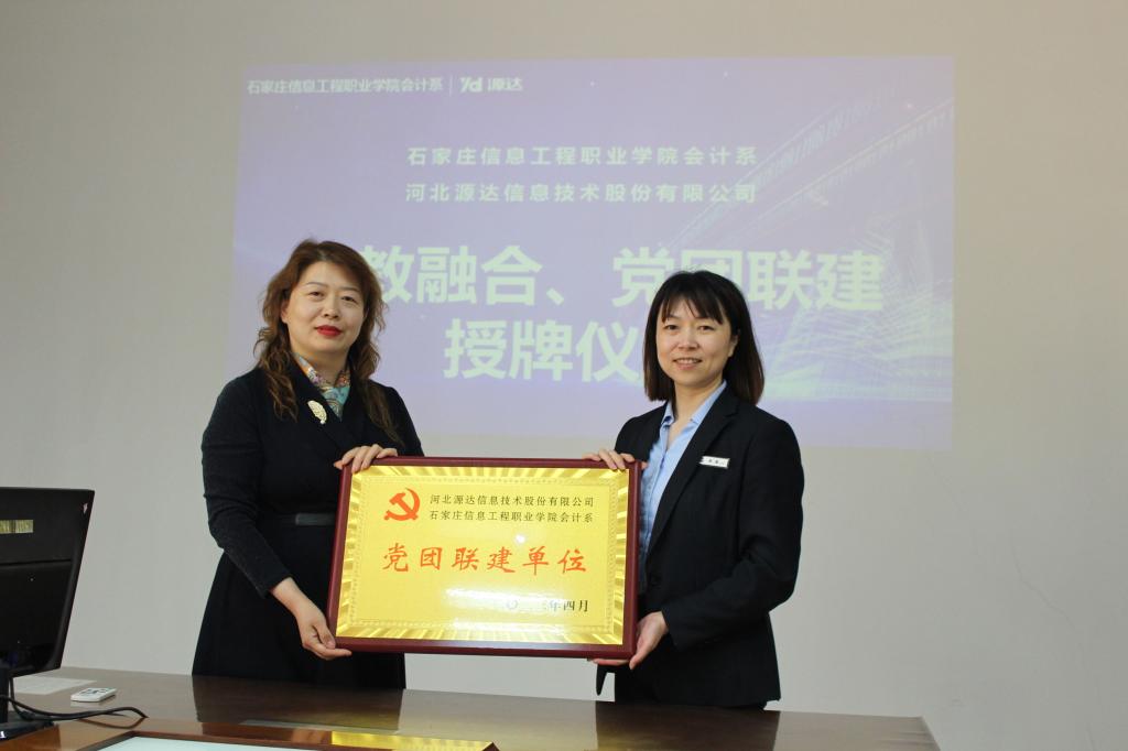 4月19日下午,会计系与河北源达信息技术股份有限公司举行“党建引领、产教融合、协同育人”联建共建签约授牌仪式,为校企合力打造“理念融合、目标融合、责任融合”的校企合作新模式搭建平台。学院校企合作部主任盖海红,会计系党总支书记田静、主任李素其出席签约仪式。