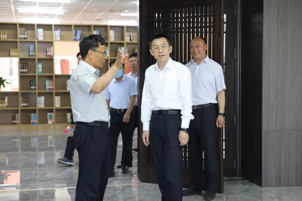 张春生先后深入机电工程系、传媒艺术系、图书馆深入了解学院系部设置、专业建设、软硬件设施等方面的情况,与系部负责人、现场教师亲切交流。