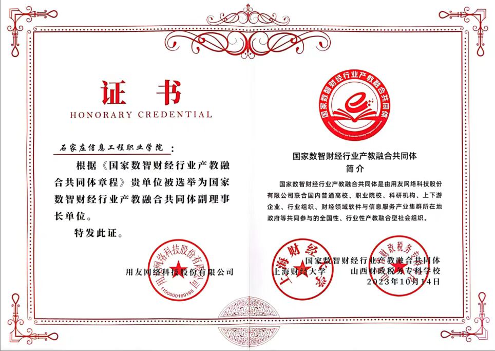 国家数智财经行业产教融合共同体由全国工商联人才交流服务中心、中国商业会计学会、中国中小企业协会数智化专业委员会指导,用友网络科技股份有限公司、上海财经大学、山西省财政税务专科学校牵头,江西财经大学、北京工商大学、深圳职业技术大学、南京工业职业技术大学、浙江金融职业学院、江西财经职业学院、北京财贸职业学院等院校共同发起成立。截至目前,共有来自全国29个省、市、自治区的750余家高校、中高职院校、行业协会、企业及社会组织成为共同体首批理事单位成员。