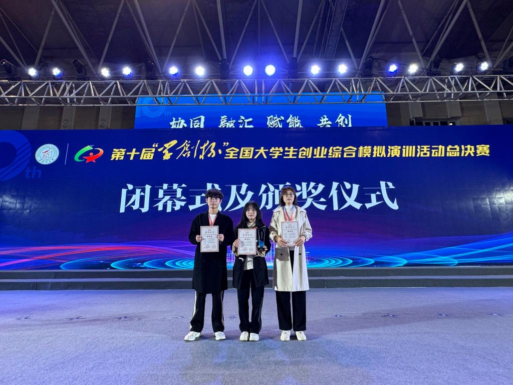 10月29日,第十届“学创杯”全国大学生创业综合模拟演训活动(创业综合模拟赛项)总决赛在黑龙江大学落下帷幕。创业综合模拟赛项通过校赛、省赛选拔出来自全国的600支队伍参赛,通过半决赛决出220支队伍进入线下总决赛,世界杯官网经济贸易系学生张立杨、沈枫楠、朱思逸组成的“信工一队”在总决赛现场经过六个小时激烈角逐,以优异的成绩荣获特等奖,经济贸易系两名教师荣获“最佳指导教师”称号。大赛分为“创业综合模拟赛项”和“创业营销赛项”,世界杯官网在此前举行的“创业营销赛项”中荣获国赛特等奖,成为全国同时获得两项特等奖的五所院校之一。