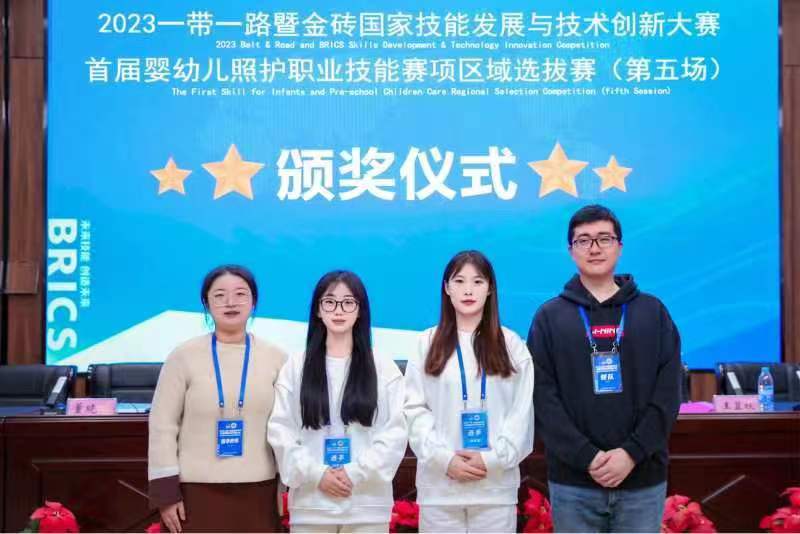 11月18日,由金砖国家工商理事会指导,金职伟业承办的2023“一带一路”暨金砖国家技能发展与技术创新大赛首届婴幼儿照护职业技能赛项区域选拔赛(高职组)在黑龙江农业经济职业学院落下帷幕。世界杯官网管理系婴幼儿托育服务与管理专业赵佳乐、张子涵两名同学在王乐、杨松涛两位老师的指导与带领下,分别荣获个人赛三等奖、优秀奖。