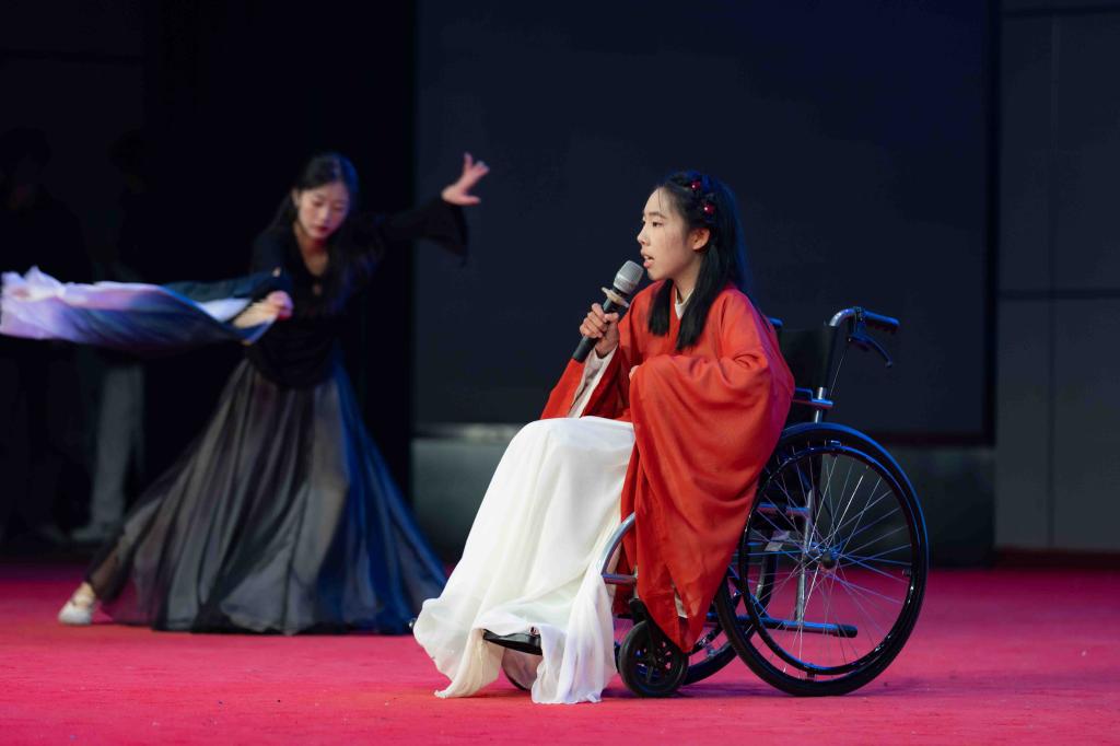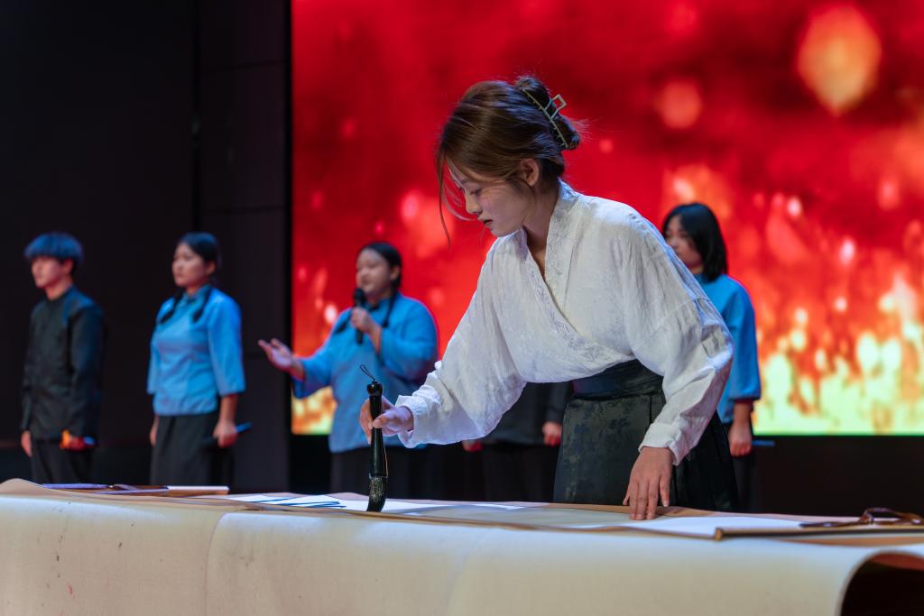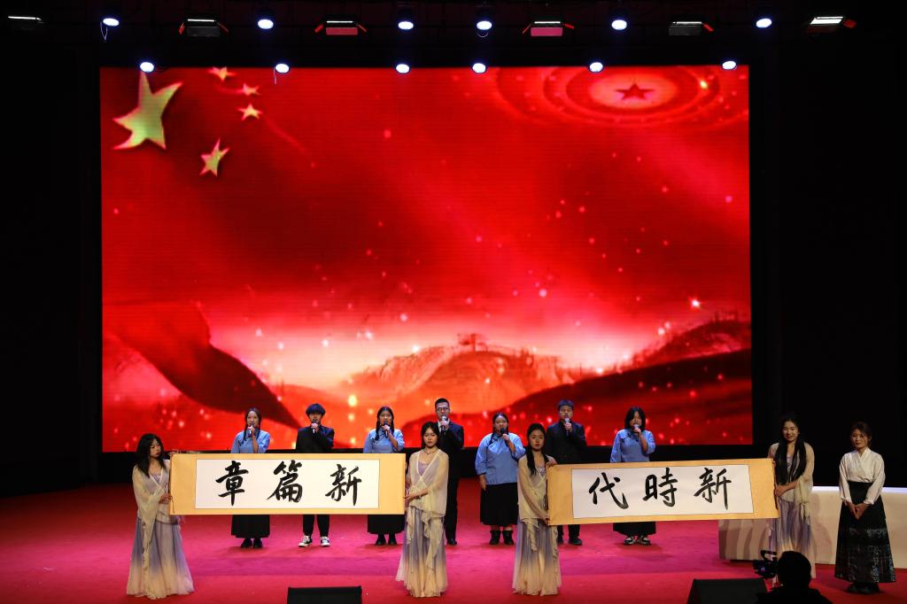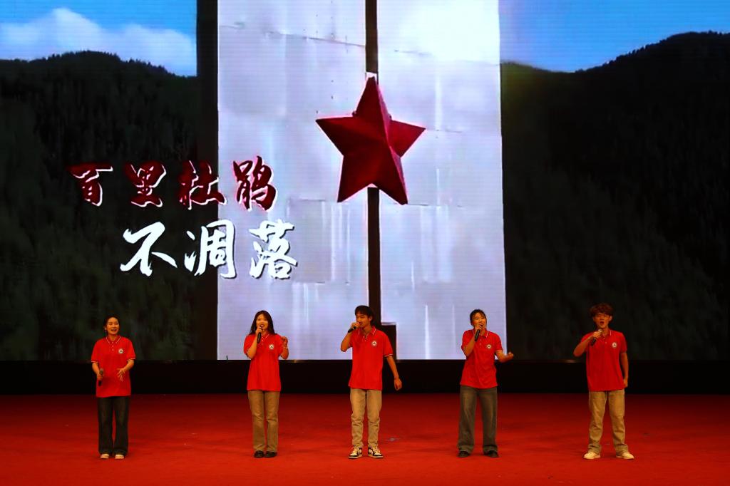 青春逢盛世,奋斗正当时。在“新征程”篇章,慷慨激昂的朗诵《青春中国》是年轻人的呐喊,歌曲《如愿》《光亮》、长征版《奢香夫人》唱出年轻人的心声,展现出青年学子积极进取、迎接新挑战的精神风貌。