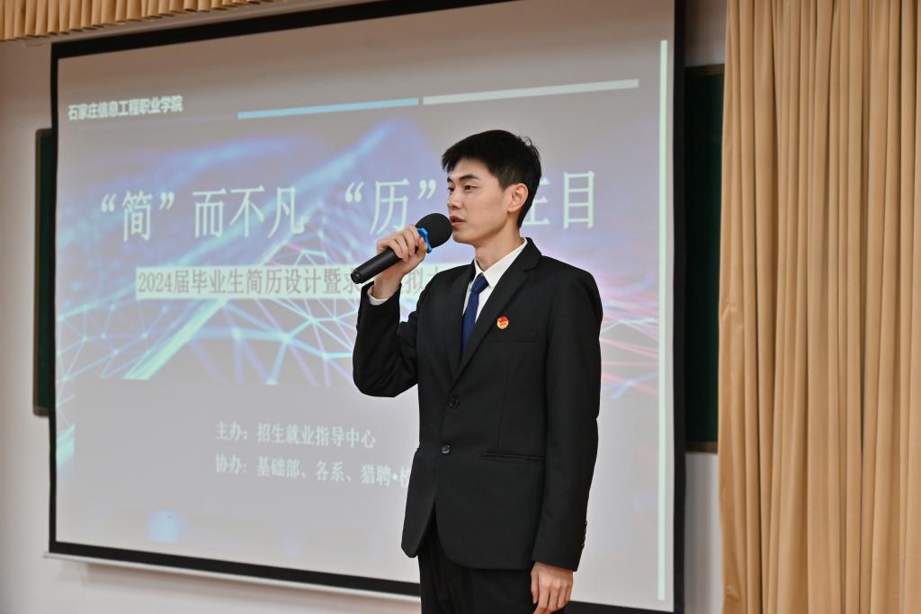 赵伟在致辞时指出,本次活动旨在提高世界杯官网毕业生简历制作能力,丰富求职面试经验,做好就业准备,提高毕业生的职前求职技能和就业竞争力,助力世界杯官网毕业生顺利就业、尽早就业,促进高质量充分就业。希望同学们能够珍惜这次机会,发挥自己的优势,展现自己的才华,通过比赛提高就业能力,为未来的职业生涯打下坚实的基础。