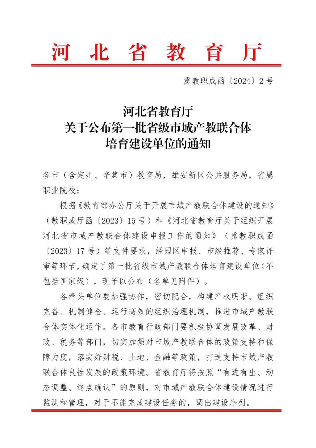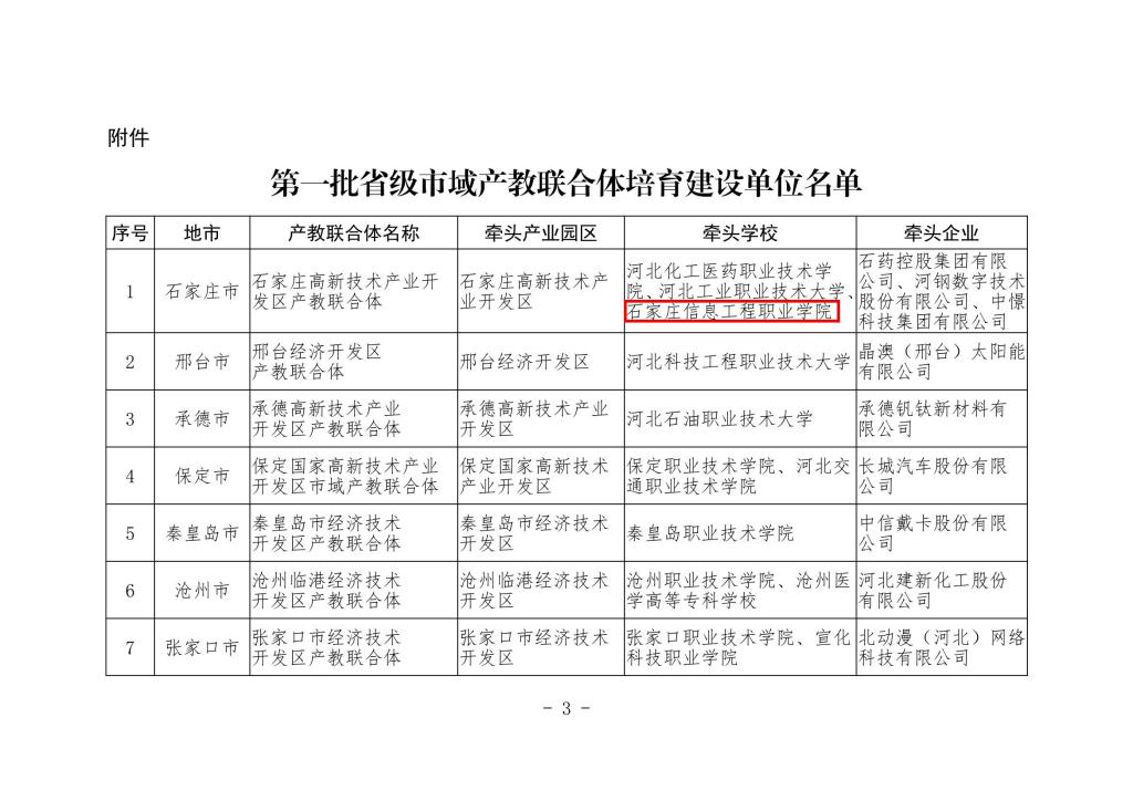 近日,世界杯官网牵头申报的石家庄高新技术产业开发区产教联合体成功入选河北省教育厅第一批省级市域产教联合体建设培育单位名单。