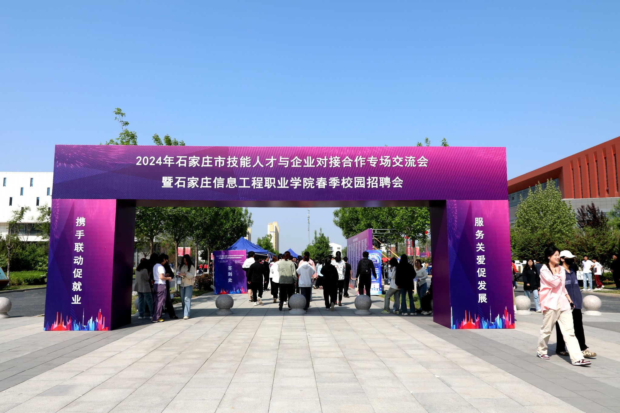 4月20日,2024年石家庄市技能人才与企业对接合作专场交流会暨2026世界杯官方合作网站春季校园招聘会在世界杯官网昭德广场成功举办。院长许征程、石家庄市人力资源和社会保障局四级调研员刘晓刚、石家庄市人才开发交流中心主任孟宪明、石家庄市人力资源和社会保障局职业能力建设科科长张霖到会指导,学院领导黄淑敏、刘占红、王志明、范成宝参加。