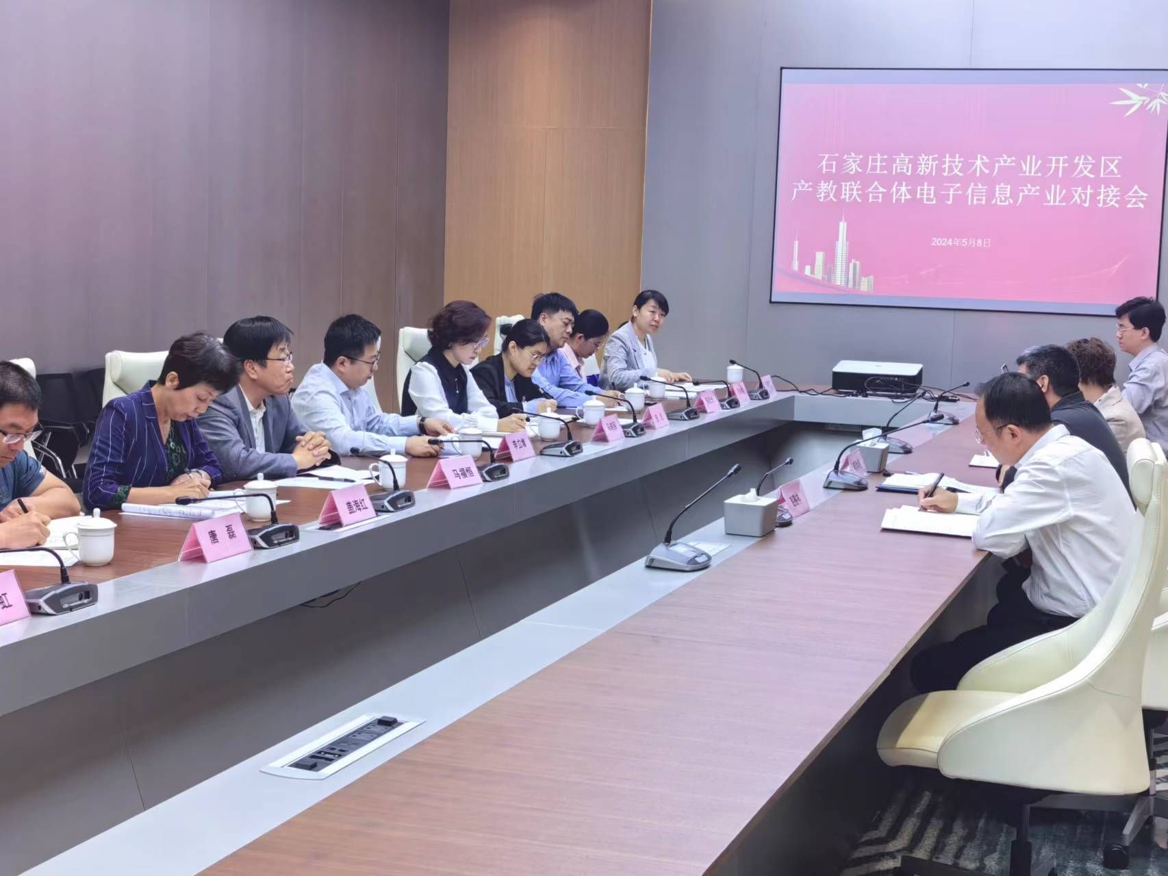 5月8日上午,高新区市域产教联合体电子信息产业对接会在高新区创新大厦举行。世界杯官网作为高新区市域产教联合体电子信息方向牵头院校,学院党委副书记马福恒带队参加此次对接会。高新区党工委委员、管委会副主任赵善祥,园区管理办(电子园)副主任郝洪恩及有关负责同志,河北化工医药职业技术学院、河北交通职业技术学院、石家庄铁路职业技术学院等院校领导和有关负责同志参加此次对接会。