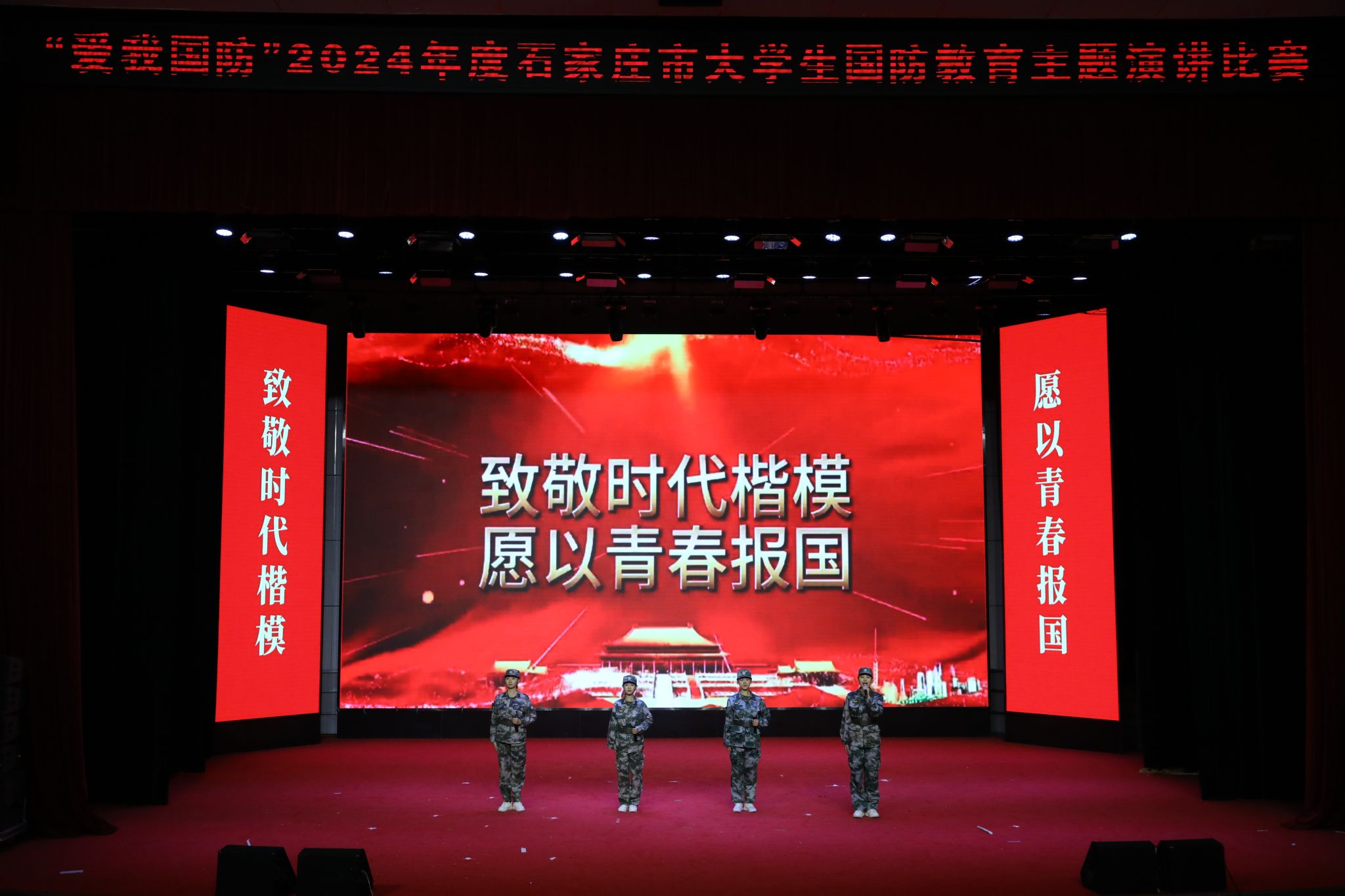 参赛选手们围绕“爱我国防”这一主题,以一个个鲜活的故事、一段段感人的经历,诠释了自己对国防的理解,展现了我市青年学生崇尚英雄、矢志报国强军的国防热情和蓬勃向上的精神风貌。