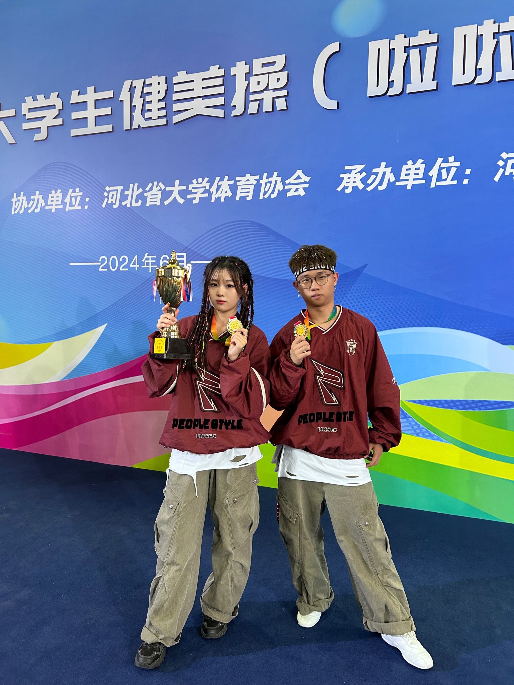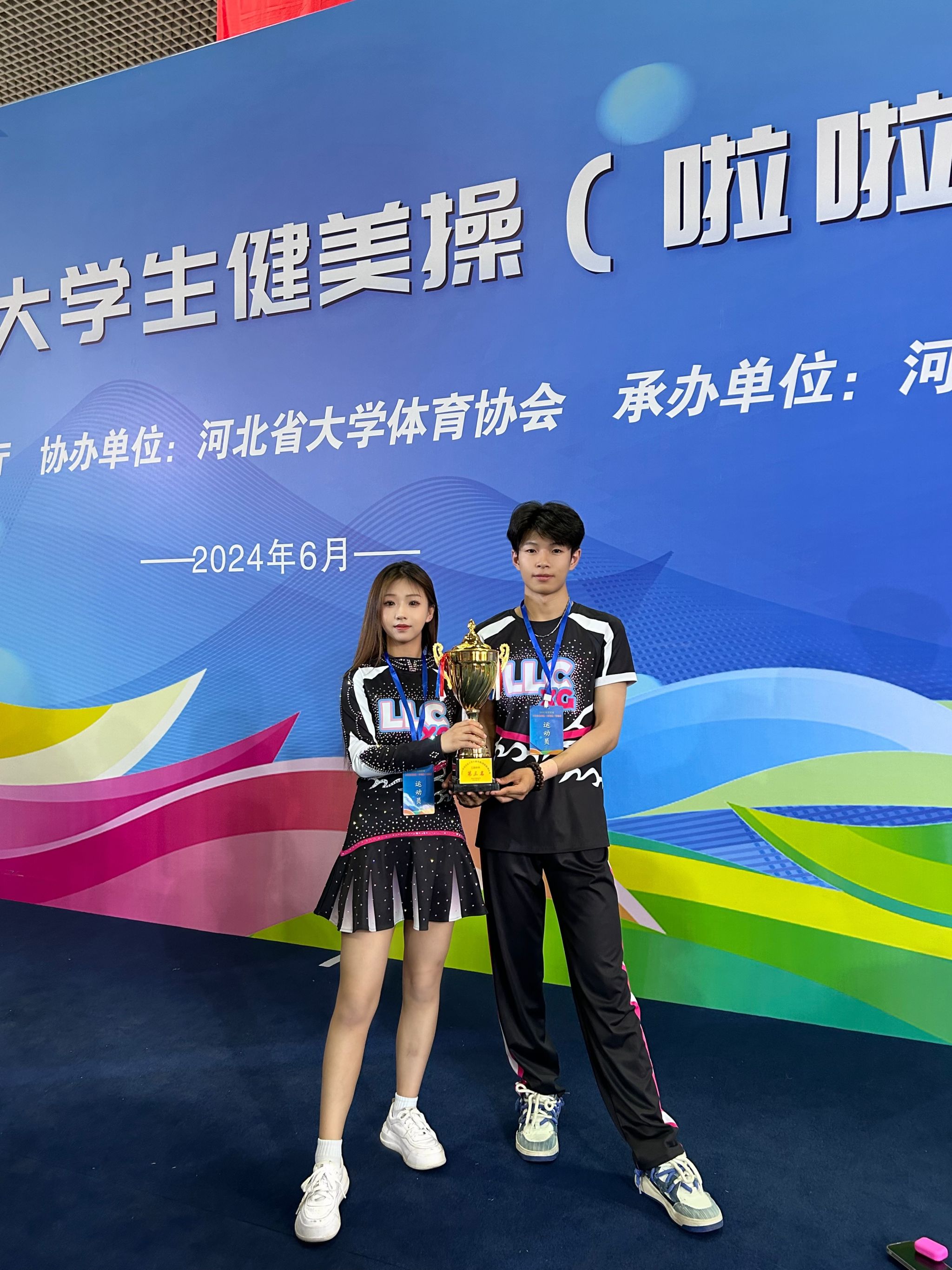 ▲传媒艺术系王贺萌、软件工程系刘硕荣获双人花球项目第六名