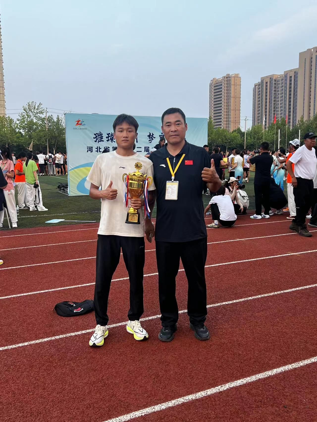 ▲十项全能第三名张云哲及教练员李文超