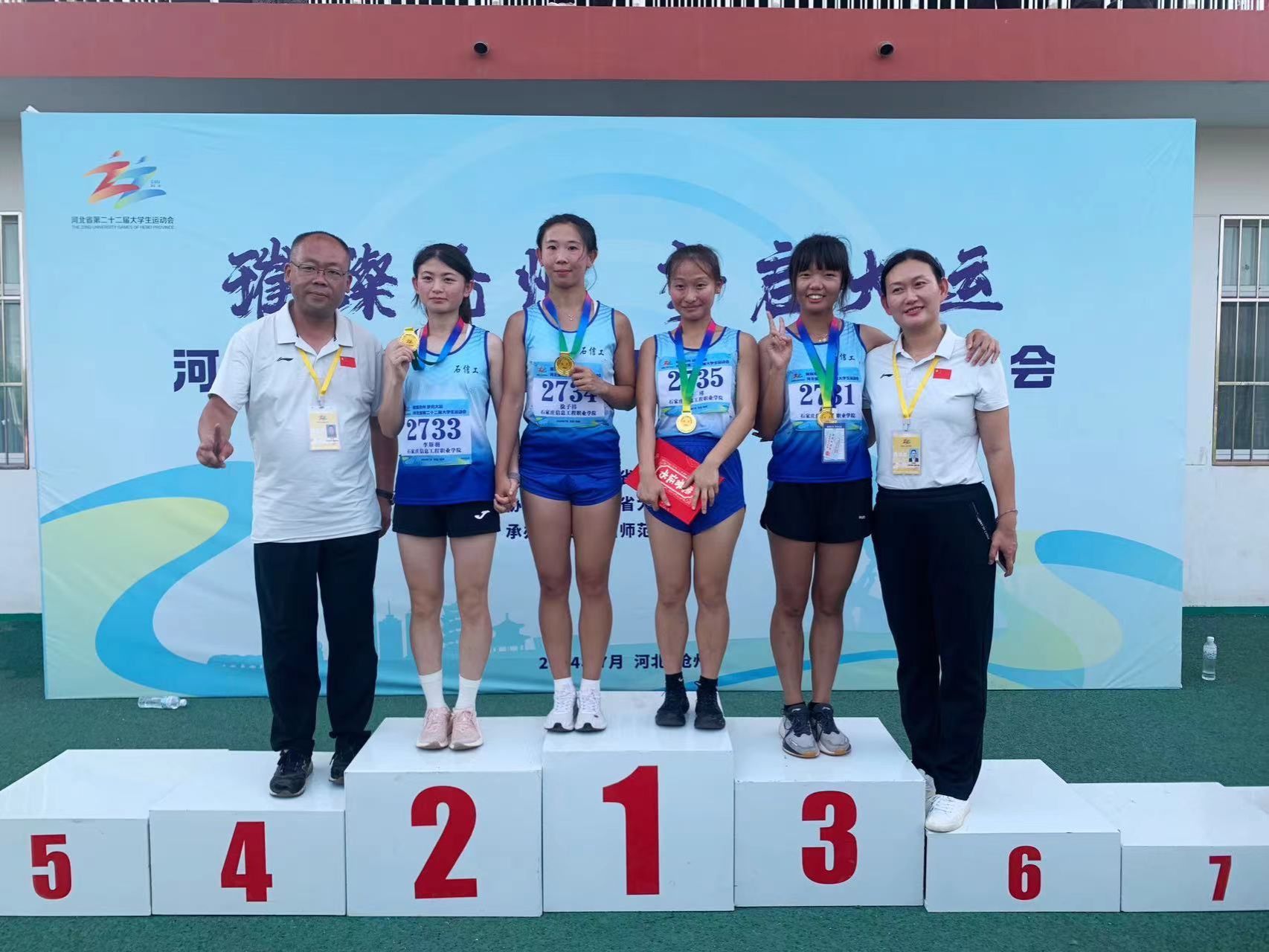 ▲女子乙组4×400米接力冠军颁奖现场