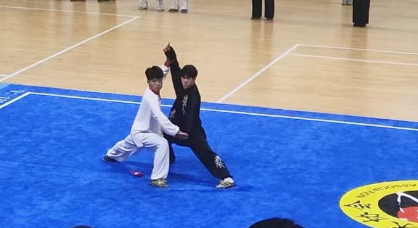 ▲管理系刘鑫洋、网络与通信工程系黄泰基获得男子乙组太极活步推手对练第二名