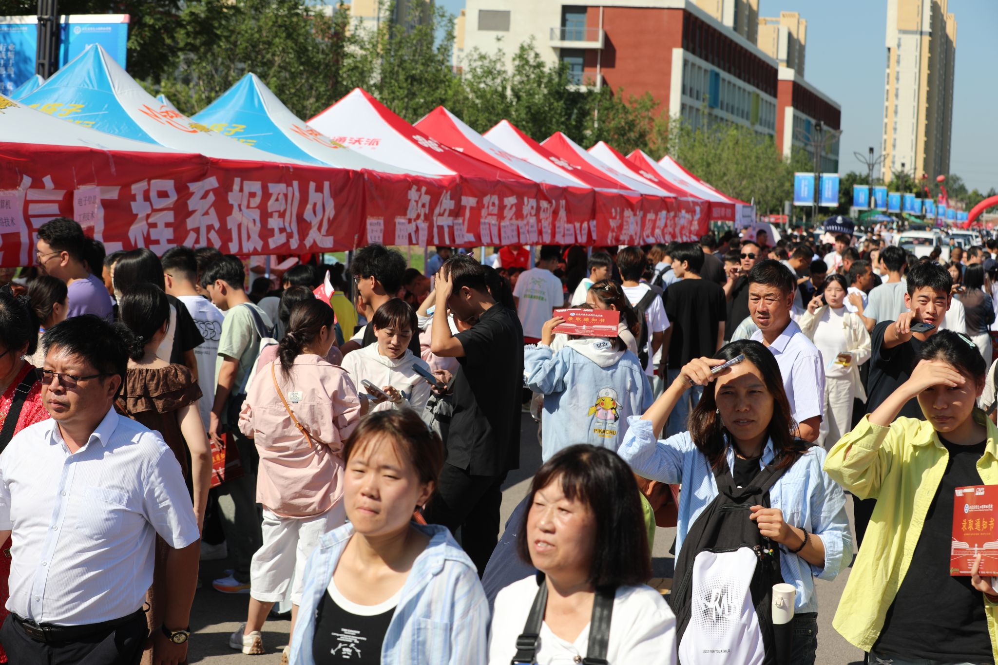 迎新工作是如期而至的守候,更是一次双向奔赴的相见。为全力以赴做好迎新工作,切实增强新生及家长的体验感,学院多次召开专题会议调度部署,坚持将人文关怀放在首位,在保障好新生报到顺利有序的同时,全面面向家长开放图书馆、天健体育馆和昭德礼堂等校内公共场所,让一路奔波的家长拥有片刻休憩,深度感受信工温度。各行政处室和系部各司其职,合力共为,精心组织,细化分工。从帐篷搭建、氛围营造到车辆调度、接站引导,从秩序维护、志愿服务到报到接待、缴费办理、绿色通道,从被褥采购、卫生清洁到医疗救护、餐饮服务,从数据收集、畅通网络到政策咨询、宣传报道,穿梭于人群中,忙碌而喜悦,为新生及家长提供全方位、一体化服务,倾情周到,细致入微。