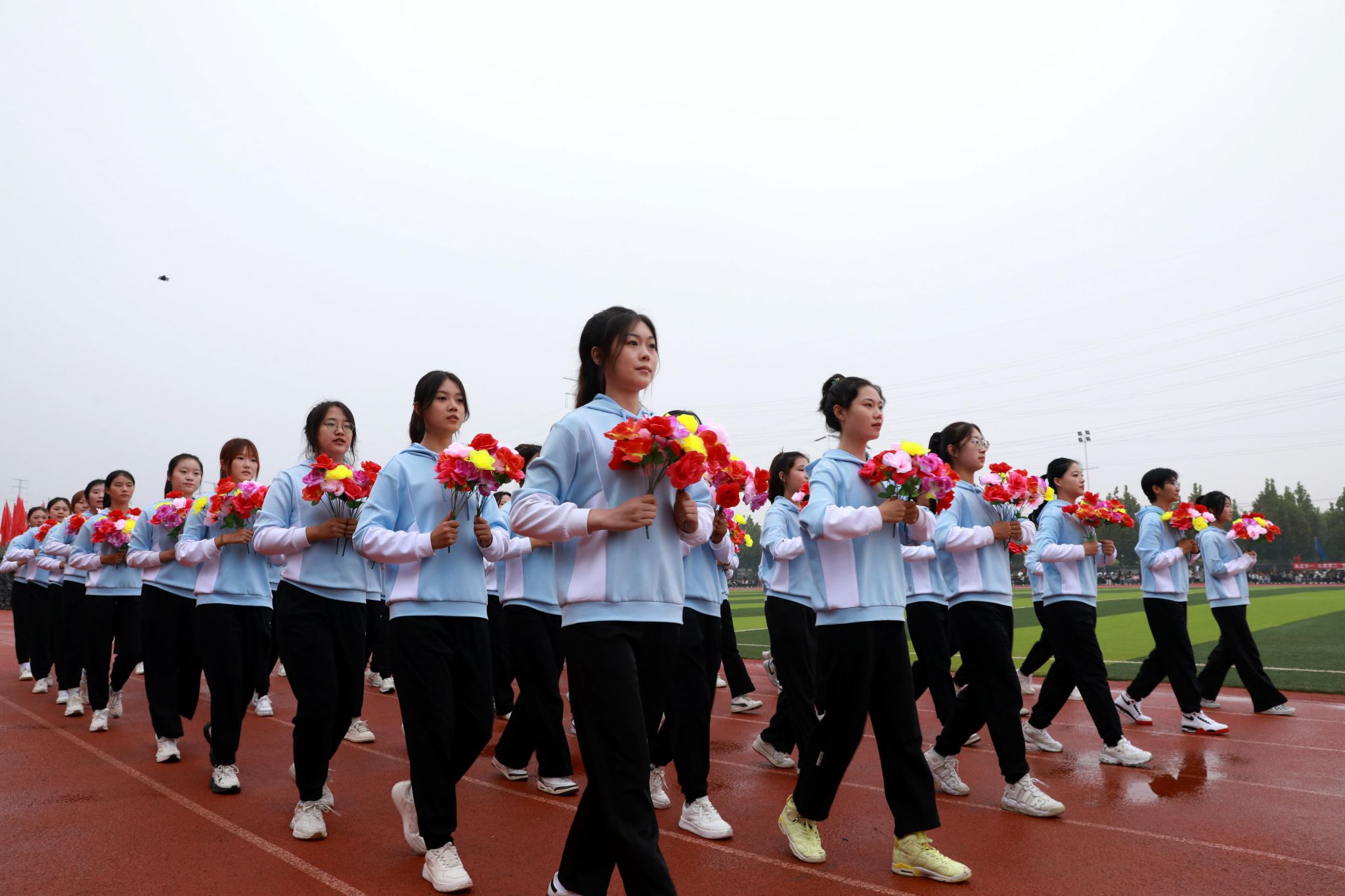 燃动青春,尽情绽放。啦啦操表演《舞动青春》手持闪耀的花球涌向绿茵场,以整齐划一的动作、充满活力的舞姿瞬间点燃现场气氛;瑜伽表演《舞韵瑜伽》以其清新而宁静、优雅与深邃传递出身心平衡、和谐共生的理念;传统武术表演《龙飞扇舞》时而昂首阔步,时而腾空而跃,刚柔相济,动静交错;航模表演引擎轰鸣,同学们亲手制作的各式航模在空中自由翻转、你追我赶,划出一道道优美的彩色曲线,展示了高超的飞行技巧和团队协作能力。掌声经久不息,喝彩声此起彼伏。