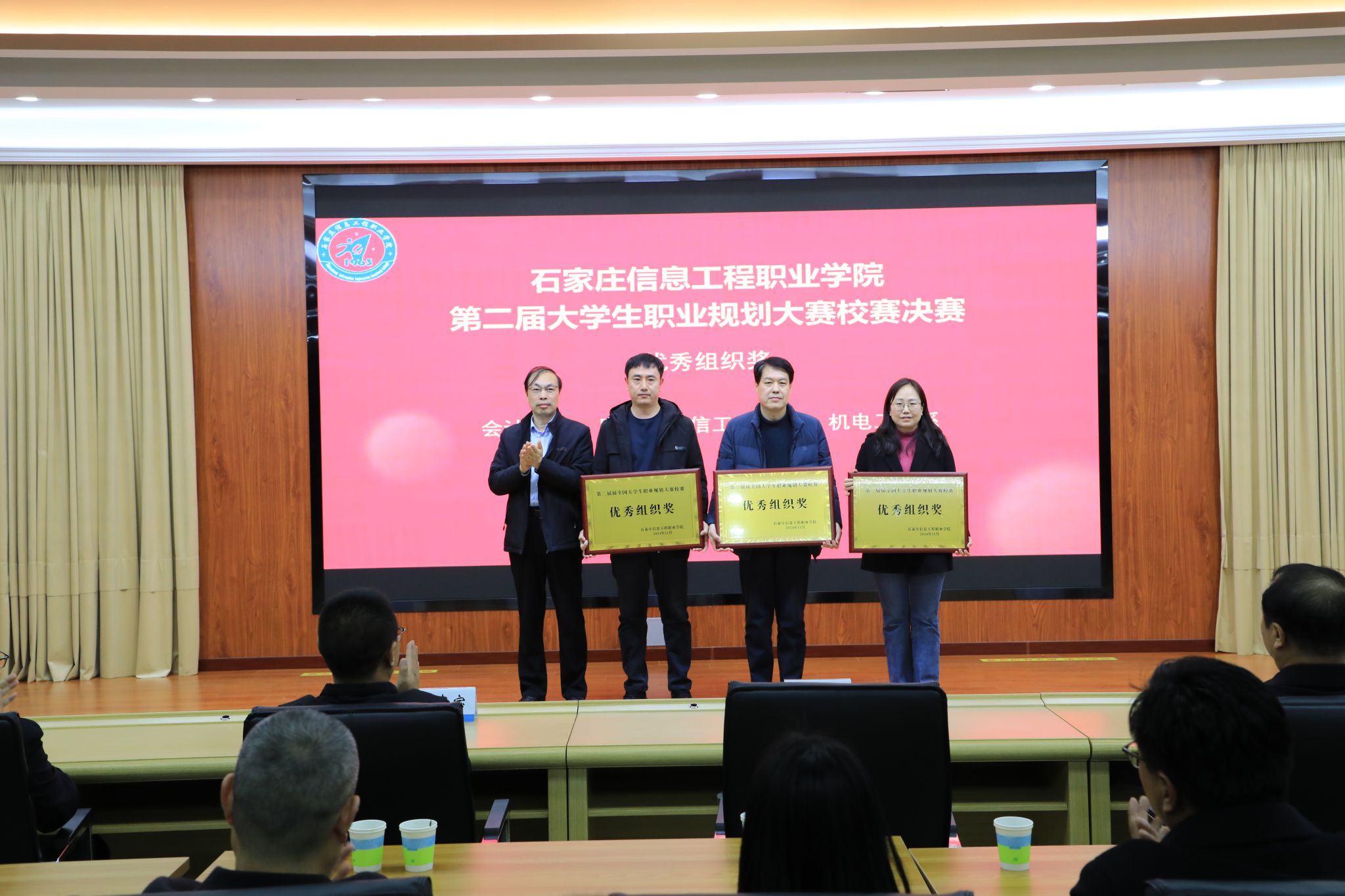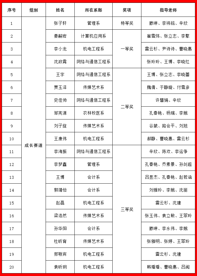 颁奖仪式上,还对获奖选手的指导教师及在本次校赛组织中做出突出贡献的会计系、网络与通信工程系、机电工程系进行了表彰。