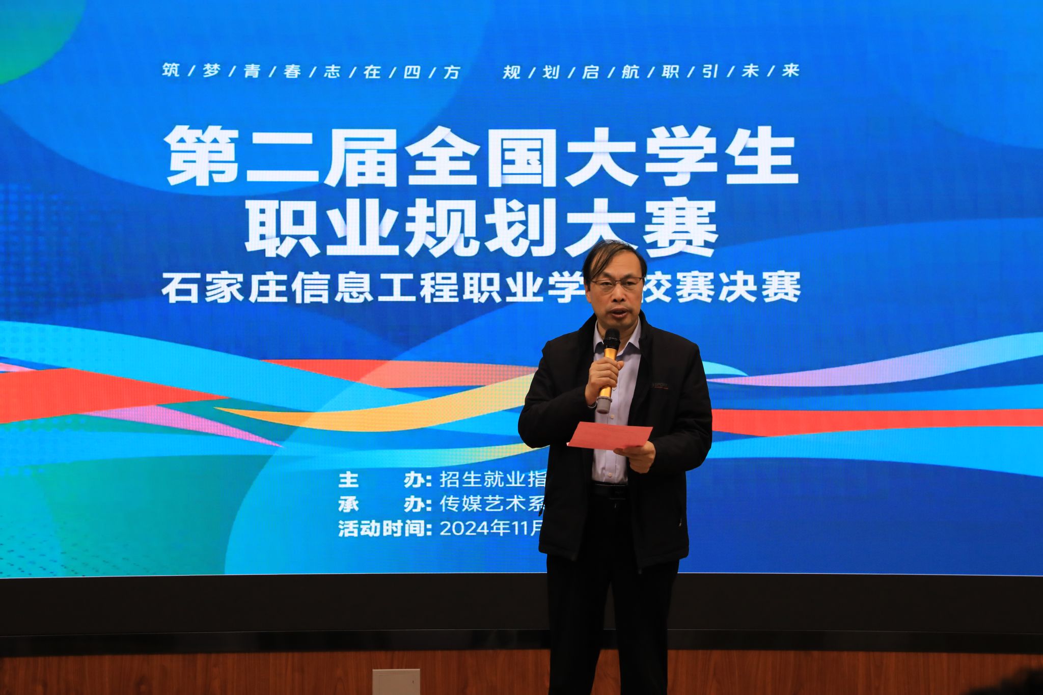 11月22日下午,世界杯官网第二届大学生职业规划大赛校赛圆满落幕。此次大赛由招生就业指导中心主办、传媒艺术系承办,学院副院长刘占红出席并致颁奖辞,学院领导赵惠娟、王志明、范成宝参加。活动特邀兄弟院校和行业企业专家担任评委,各系负责人及师生代表到场观摩。