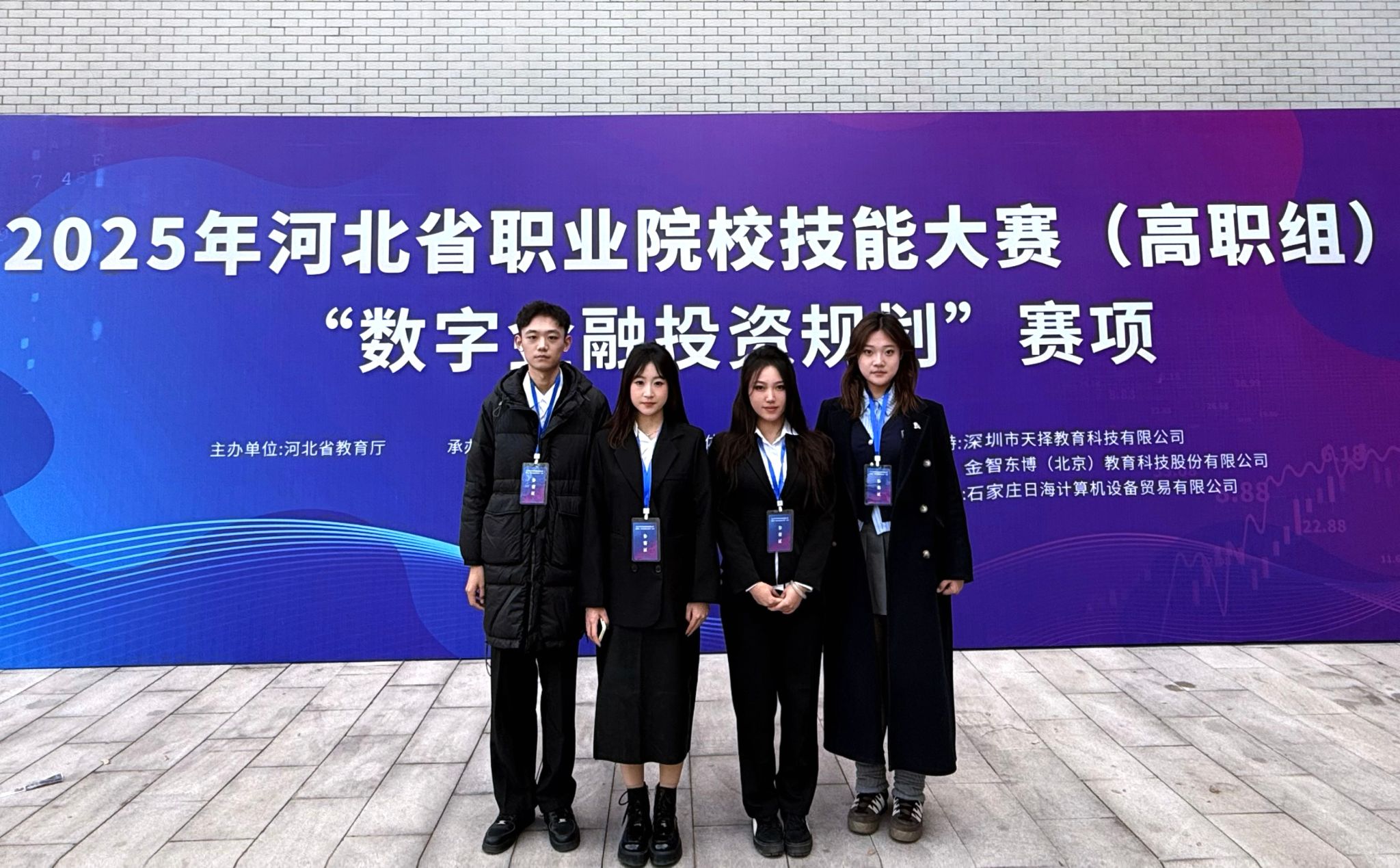 11月30日,由河北省教育厅主办,河北省商业产教融合共同体(职业教育集团)、河北工业职业技术大学承办,深圳市天择教育科技有限公司和北京金智东博教育科技有限公司提供技术支持的2025年河北省职业院校技能大赛(高职组)“数字金融投资规划”赛项落下帷幕。来自全省职业院校的16支代表队参加该赛项的比赛,经过激烈角逐,世界杯官网会计系23级金融科技应用2班杜沛哲、李雅双,23级金融服务与管理1班赵悦涵,23级金融服务与管理2班孔艳蕊组成的参赛团队荣获省级三等奖。