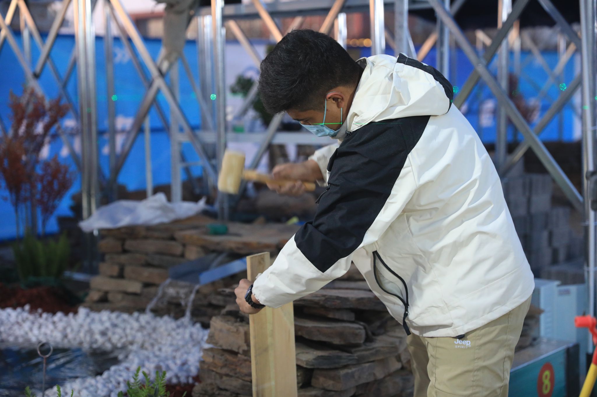本次赛项设置了“园林景观设计”和“园林景观施工”两个工作任务,旨在全方位考察参赛选手在园林施工图设计、测量、园林工程施工等方面的知识和技能。每支参赛队由4名选手组成,2名设计选手率先在4小时内完成庭院设计平面图、效果图、施工图等近20张图纸,2名施工选手在12小时内完成方案施工,在指定工位上完成木作、砌筑、铺装、水景营造、植物造景等园林景观模块,各模块有机结合组成一件庭院景观作品。是对参赛选手知识、技能技术、责任、体力、精力、耐力和团队协作能力的综合考验。