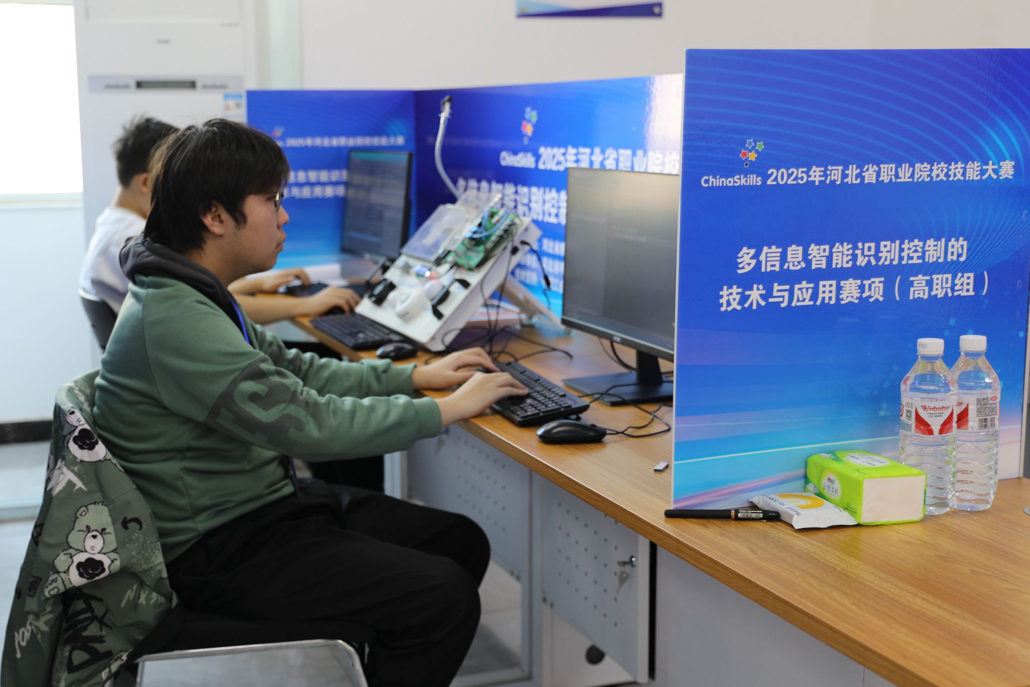 多信息智能识别控制的技术与应用赛项要求选手们依据实际工作岗位要求,进行开发环境搭建、人工智能识别应用、数据集预处理、模型构建与训练以及模型部署与应用,全面考察其多信息智能识别技术能力和专业素养。比赛现场,选手们沉着冷静、全力以赴,展现了良好的职业技能与专业风采。