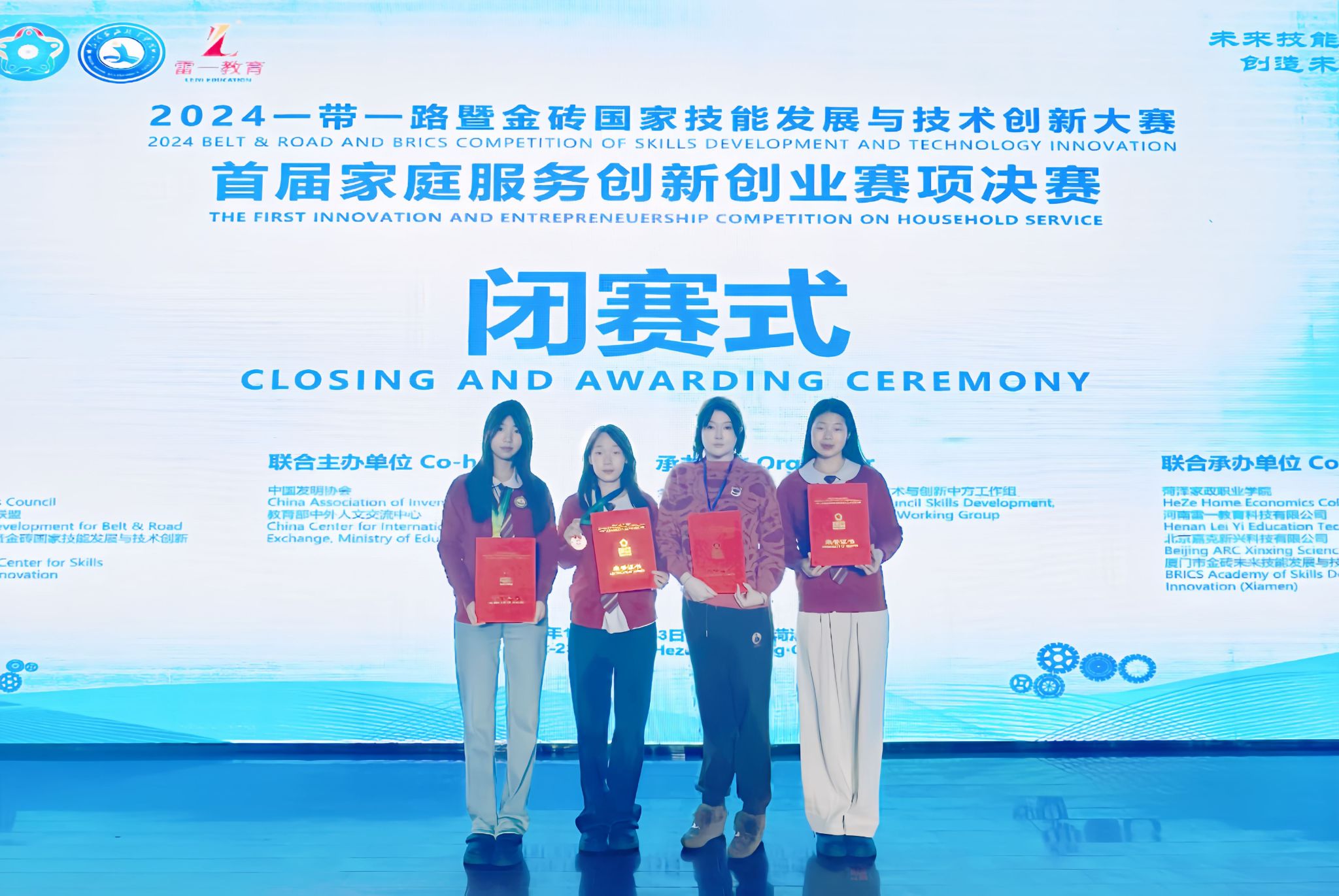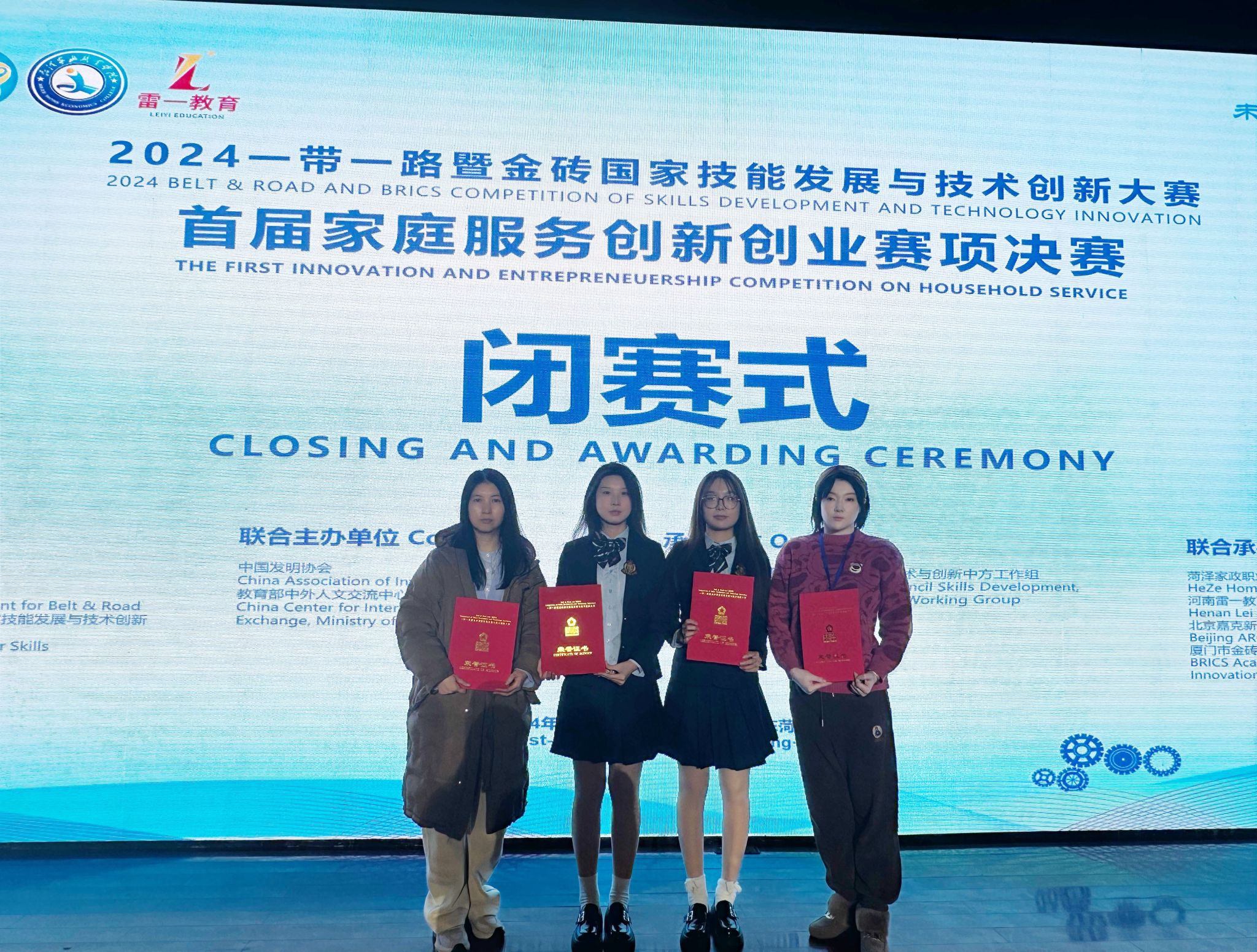12月23日,2024一带一路暨金砖国家技能发展与技术创新大赛首届家庭服务创新创业赛项决赛在山东菏泽家政技术学院落幕。在全国高校组决赛中,世界杯官网生物医药技术系婴幼儿托育服务与管理专业的2个参赛项目从70多个决赛项目中脱颖而出,分别荣获二等奖、三等奖。其中,姜梦琦、王淼、杨若冰、霍鑫团队的“爱特宝妈一站式托育到家”项目荣获二等奖,指导教师史晶晶、刘义青获“优秀指导教师奖”,学院荣获优秀组织奖;刘思雨、方雨璇、靳紫萌、赵辛子钰团队的“爱惠托职工爱心托育”项目荣获三等奖。