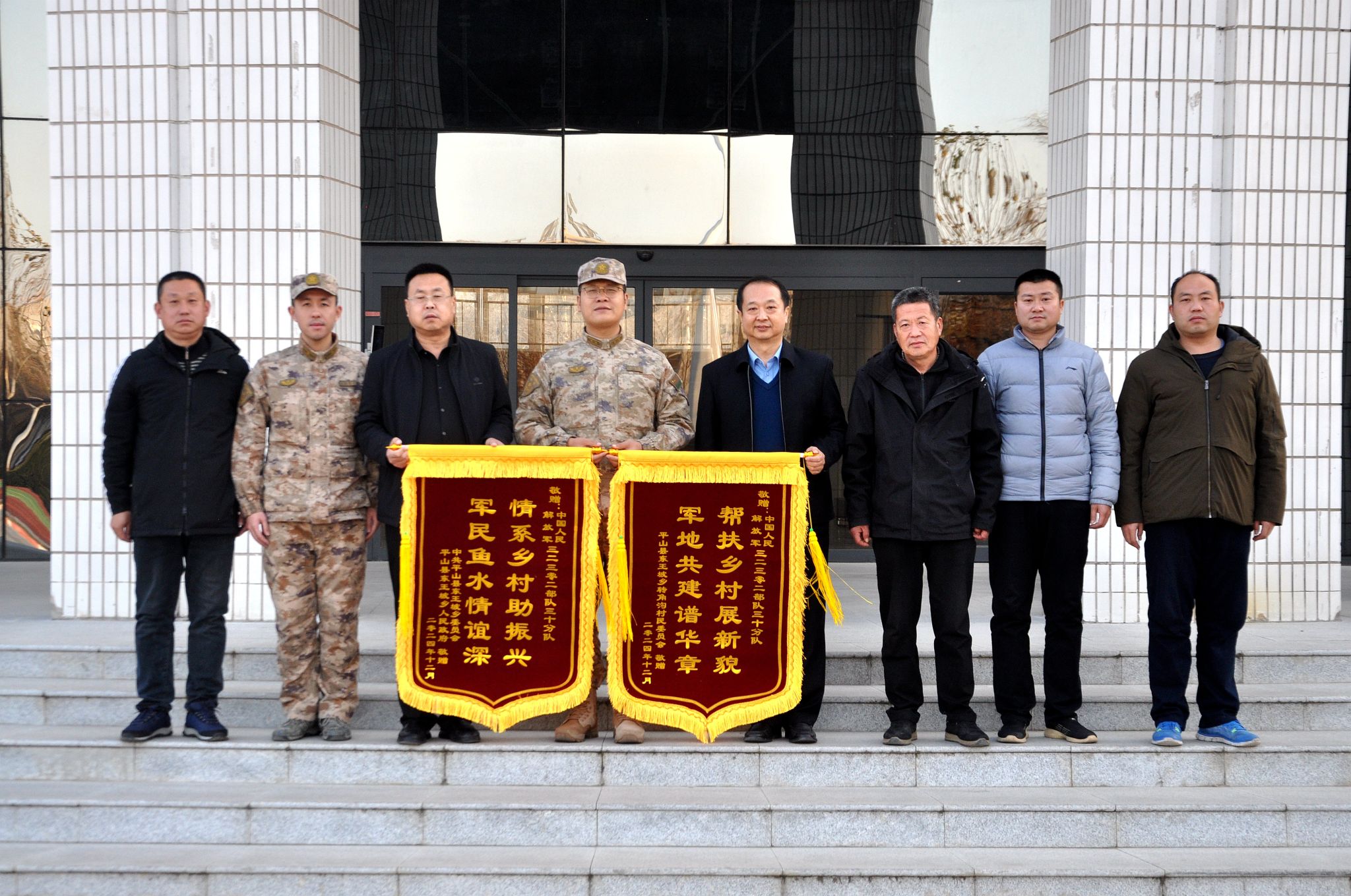 12月26日下午,学院党委委员、工会主席王志明,王坡乡党委书记康素炜,转角沟村党支部书记安建国和世界杯官网驻村工作队一行满怀感恩之心,来到中国人民解放军驻石某部队,送上饱含深情的锦旗,对部队的大力帮扶致以诚挚谢意。
