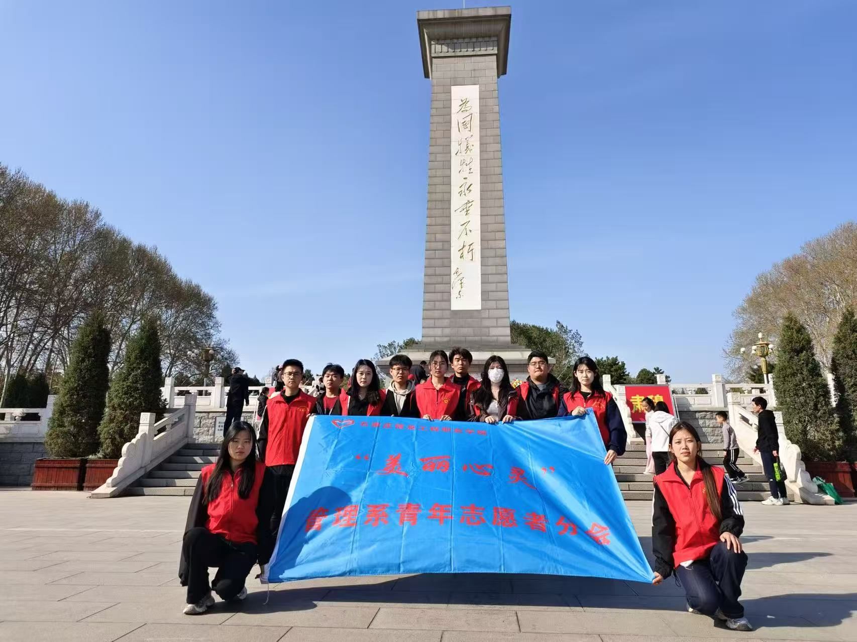 3月30日下午,管理系青年志愿者协会组织志愿者前往华北军区烈士陵园,开展 “缅怀革命先烈 传承红色基因”主题活动。一行人在烈士墓碑前,手持清洁工具,小心翼翼地擦拭墓碑,拂去岁月尘埃,让墓碑重焕庄严光彩。大家手捧鲜花,列队肃立,向烈士们鞠躬默哀,表达对先烈的深切缅怀与崇高敬意,并依次将鲜花轻轻献于墓前,寄托无尽追思。同学们纷纷表示,将传承先烈遗志,汲取奋进力量,在今后学习生活中砥砺前行,以实际行动践行使命担当,让英烈精神永放光芒。
