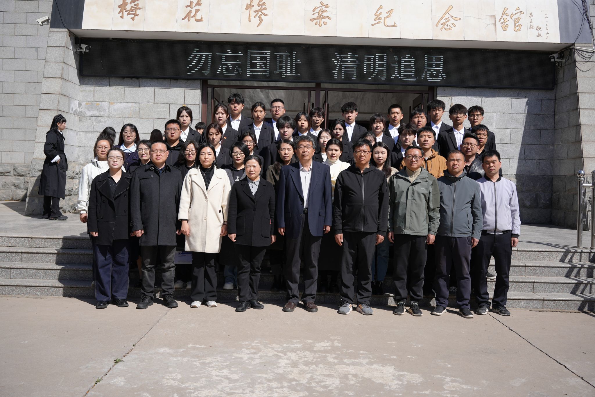 4月2日,马克思主义学院、传媒艺术系和农林牧医系组织师生代表一行40余人赴石家庄市藁城区梅花惨案纪念馆开展“缅怀先烈志 共铸中华魂”主题教育党日活动。马克思主义学院与梅花惨案纪念馆共同签署了“大思政课”实践教学基地协议书,并在纪念馆前现场授课,系统讲述侵华日军在梅花镇制造的惨案历史,引导学生思考历史教训和责任担当,强调“以史为鉴、面向未来”的现实意义。传媒艺术系4名学生作为领誓人,带领现场学生共600余人庄严宣誓:“勿忘国耻,强国有我。”现场气氛肃穆,宣誓声回荡在纪念馆上空。学生代表向遇难同胞敬献花篮,各系(院)部负责人为花篮整理挽联,全体师生怀着无比沉重的心情依次向梅花惨案遇难同胞表达深切哀悼。走进纪念馆,一张张历史图片、一件件惨案遗物,都无声控诉着侵华日军在梅花镇犯下的暴行。传媒艺术系学生表示,“参加此次梅花惨案纪念馆的祭奠活动,是一次灵魂的洗礼。历史是最好的教科书,也是最好的清醒剂。作为新时代大学生,看到同胞曾经遭受的苦难,深感唯有铭记历史,奋发图强,才能守护祖国、捍卫和平”。农林牧医系学生在参观结束后激动地说:“此次参观梅花惨案纪念馆,让我感慨万千。作为新时代的大学生,我们绝不能忘记国家的屈辱历史,要珍惜党为我们创造的幸福生活。我们应致力于学习专业知识,提升个人的综合素质,积极传播正能量,弘扬爱国主义思想。让更多的人了解历史,认识历史,共同努力,为实现中华民族伟大复兴的中国梦而奋斗。”全体师生近距离感受历史伤痛,让师生在铭记苦难中凝聚起奋进新时代的磅礴力量。