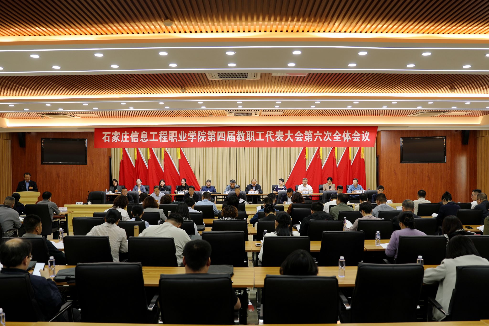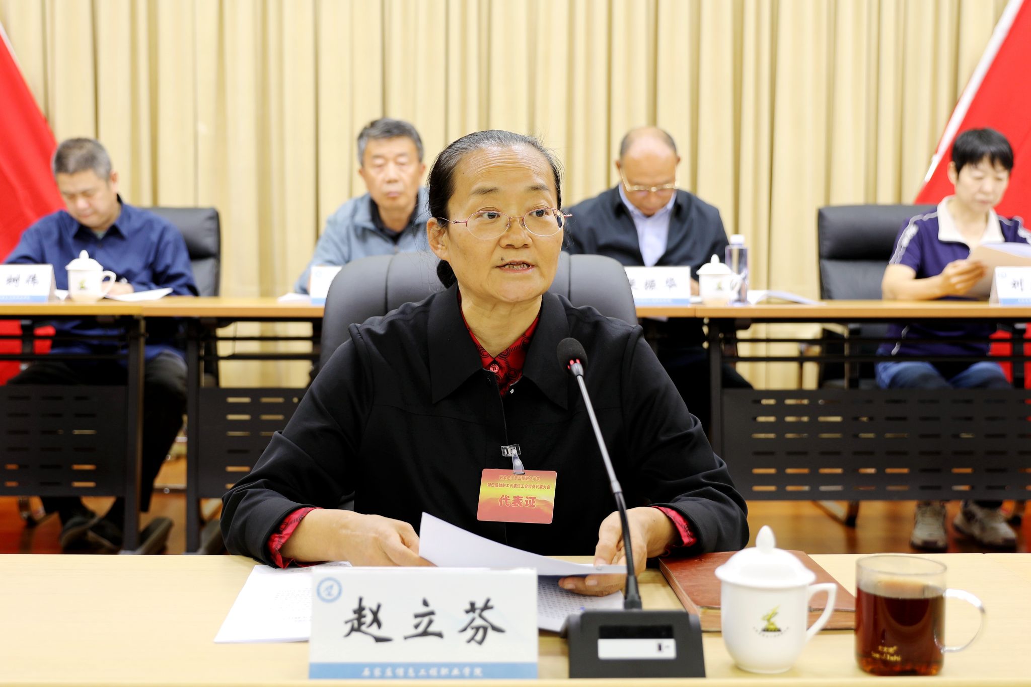 赵立芬在讲话时强调,教职工代表大会是学院民主管理和监督的主要形式,是广大教职工民主参与学院事务、共商发展大计的重要平台,是促进学院决策民主化、科学化的重要渠道,也是激发教职工主人翁意识的有效途径。对于加快推动学院高质量内涵式发展,意义重大、影响深远。一要抢抓机遇,乘势而上。今年是“十五五”规划的谋篇布局之年,中共中央、国务院印发了《教育强国建设规划纲要(2024—2035年)》,对加快建设教育强国作出全面系统部署。大家要认清形势,精准把握发展机遇,深化教育教学改革,优化人才培养模式,全面提升办学水平,为建设省内一流高水平高职院校贡献力量。二要深化改革,创新发展。要紧密围绕区域经济发展需求,深化产教融合,构建“一体、两翼、五重点”多元化人才培养体系;要健全教师发展支持服务体系,打造高水平“双师型”教师队伍;要推动产学研用一体化发展,提升学生综合素质和就业竞争力,确保人才培养与市场需求无缝对接。三要紧密团结,担当作为。要以学院发展为己任,以高度的责任感和使命感、扎实的工作作风、过硬的能力素质,积极投入到学院各项工作中,汇聚起学院高质量发展的强大动力,共同开创学院发展崭新篇章。