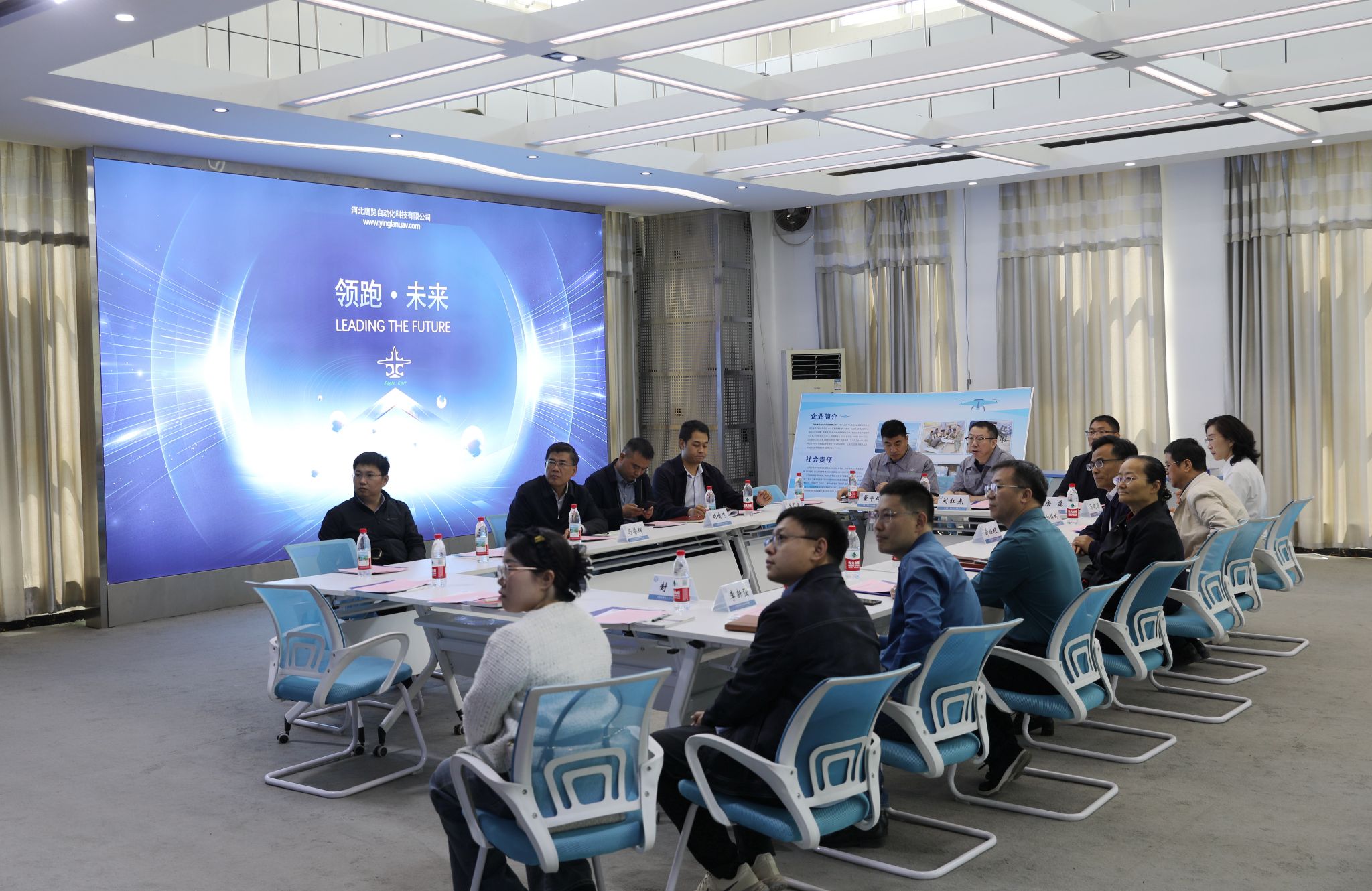 学院办公室、科研中心、机电工程系、软件工程系、网络通信与工程系、河北鹰览自动化科技有限公司相关人员参加调研。