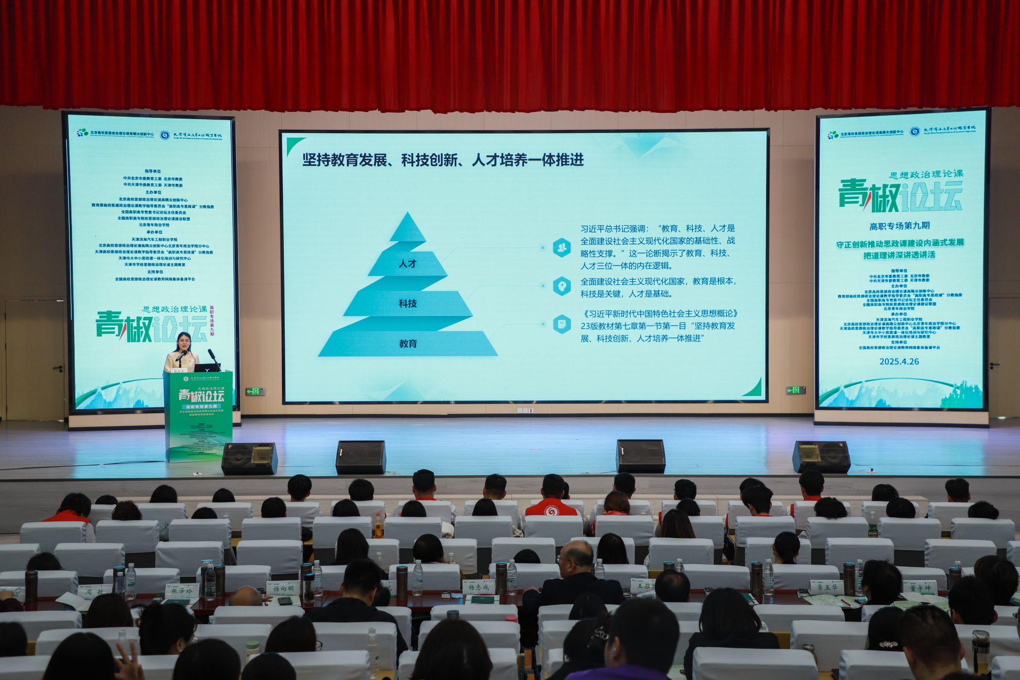 4月26日,由北京市教育两委、天津市教育两委指导,全国高校思想政治理论课教师网络集体备课平台支持,北京高校思想政治理论课高精尖创新中心北京青年政治学院分中心、天津滨海汽车工程职业学院具体承办的思想政治理论课“青椒论坛”(高职专场)第九期在天津滨海汽车工程职业学院举办。来自北京、天津、河北、广东、湖南、江西、和田8所高职院校的8位青年教师分享教育教学经验。