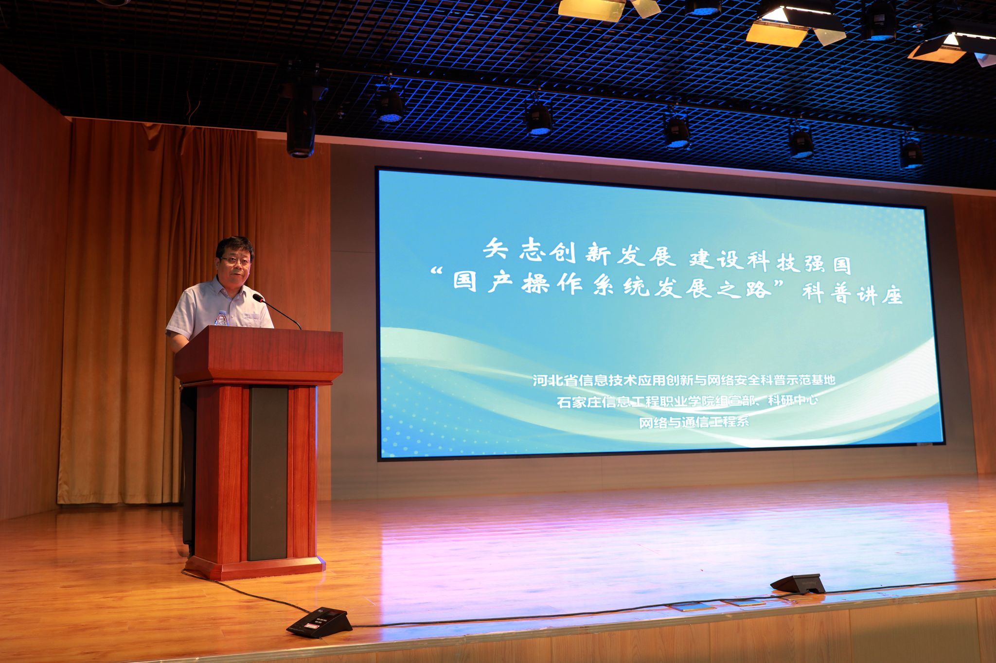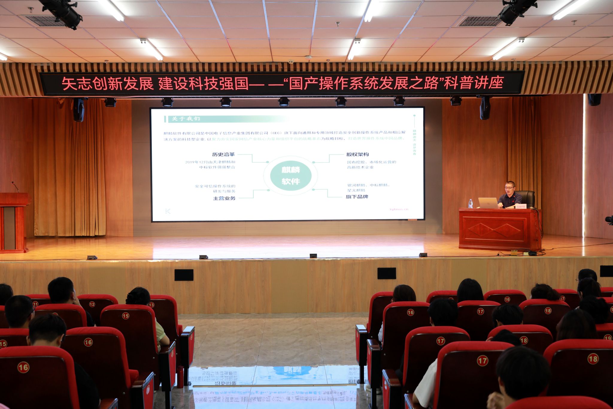 6月5日下午,“矢志创新发展 建设科技强国——国产操作系统发展之路”科普讲座在世界杯官网图书馆一楼报告厅举办。教育部产学合作协同育人项目专家库成员、教育部工程研究中心委员会委员、麒麟软件教育发展中心课研总监白树明受邀主讲。学院副院长赵伟出席并致辞。
