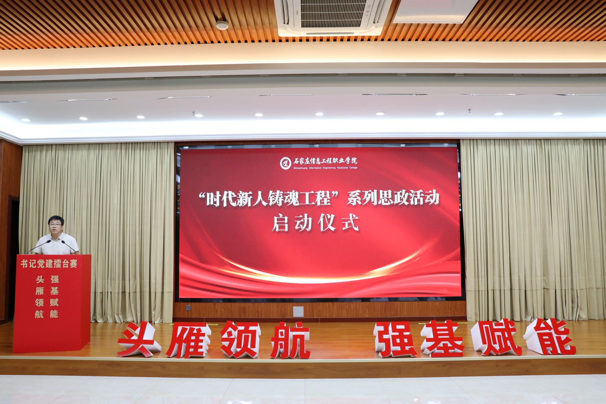 6月19日,“时代新人铸魂工程”系列思政活动启动仪式暨书记党建擂台赛在启智报告厅举行。学院党委书记赵立芬宣布“时代新人铸魂工程”系列思政活动正式启动。她强调,启动“时代新人铸魂工程”十大思政活动,既是贯彻落实习近平总书记关于教育强国建设重要论述的生动实践,也是推动学院党建和思想政治工作高质量发展的重要举措,更是落实立德树人根本任务的内在要求和关键行动。院长许征程主持启动仪式。党委副书记马福恒,副院长赵伟、刘占红,党委委员王志明、范成宝参加。