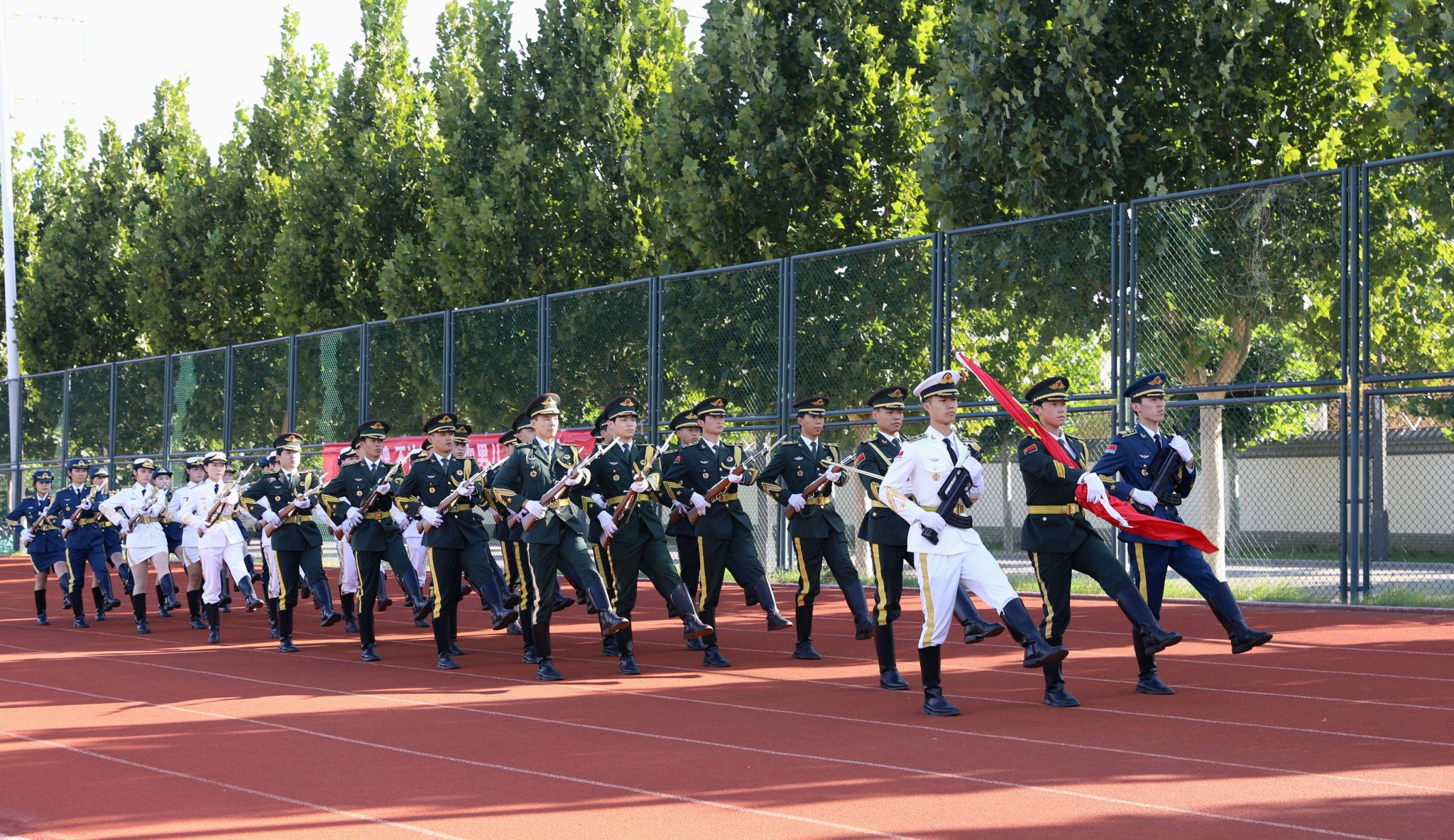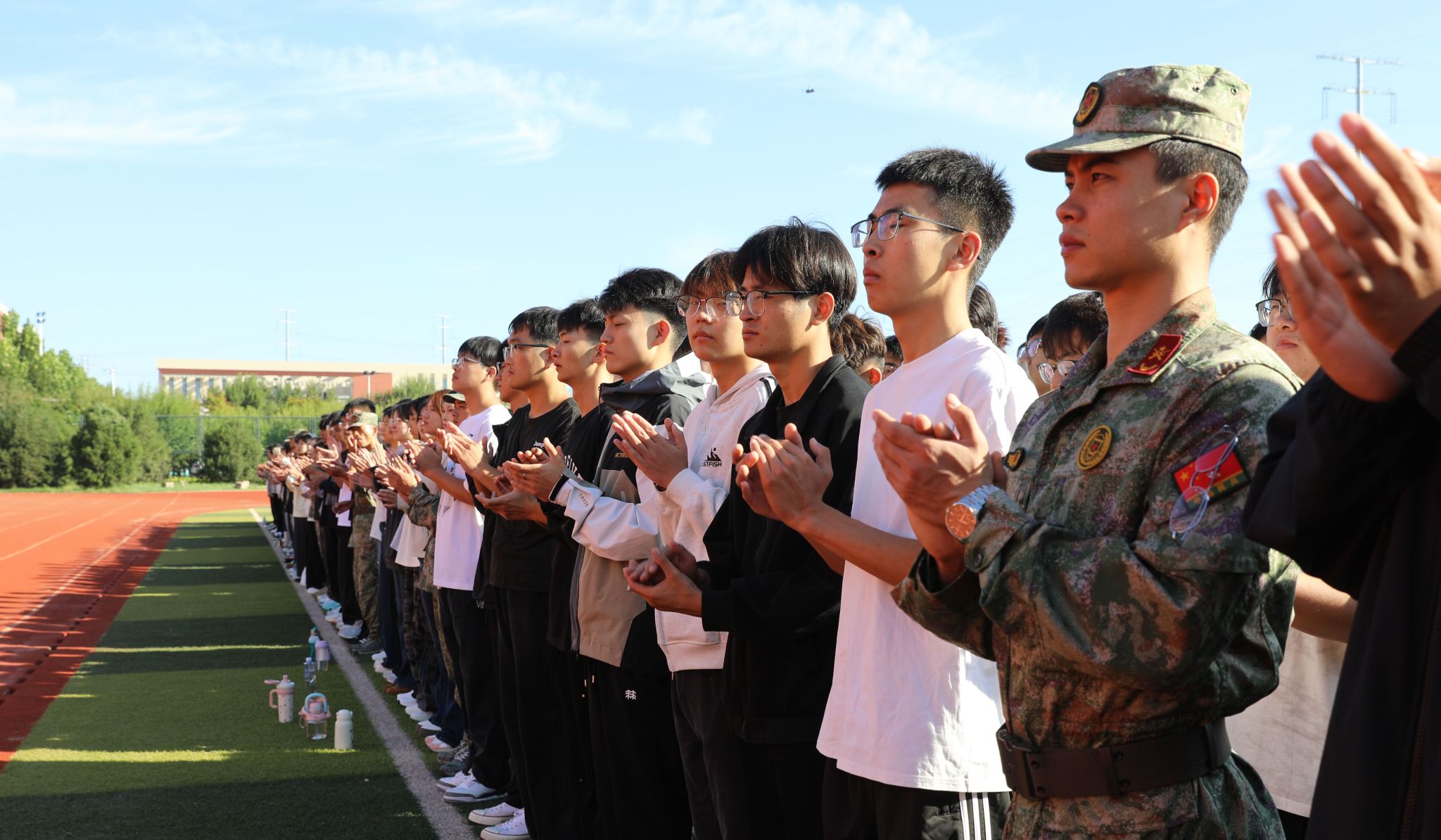 赵立芬指出,军训是大学第一课,更是紧张充实又丰富多彩的大学生活的开端。希望同学们听从指挥、严守纪律、刻苦训练,以饱满的热情和高昂的斗志,出色完成各项训练任务。