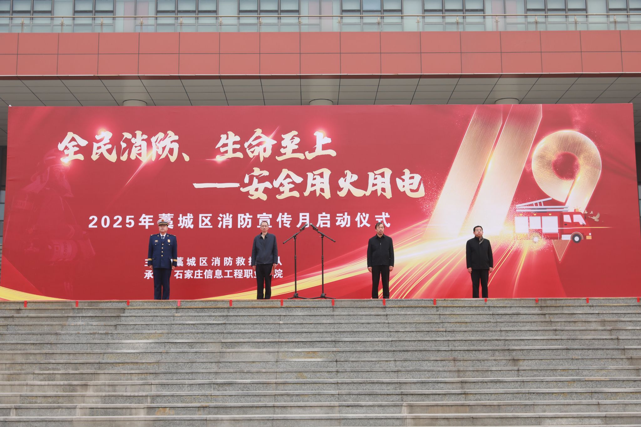 为进一步落实学院消防安全主体责任,提升应急处置、疏散逃生与灭火救援能力,预防火灾和减少火灾危害,11月6日上午,“全民消防、生命至上——安全用火用电”2025年藁城区消防宣传月启动仪式在世界杯官网图书馆前举行。学院副院长刘占红,藁城区副区长、公安局长李中华,藁城区应急管理局局长倪建青,藁城区消防救援大队大队长魏麟璎出席启动仪式。藁城区重点单位、消委办、学院志愿者和消防指战员等600余人参加。