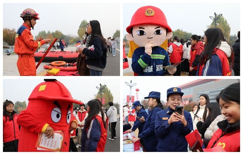活动现场,同学们积极参与消防知识有奖问答、穿戴灭火救援服、消防水带保龄球、与消防人偶拍照打卡、乘坐云梯车等活动,学习消防安全知识的热情很高。通过消防救援人员向现场群众发放宣传资料,为广大师生讲解消防安全知识,增强了师生员工的消防安全意识。