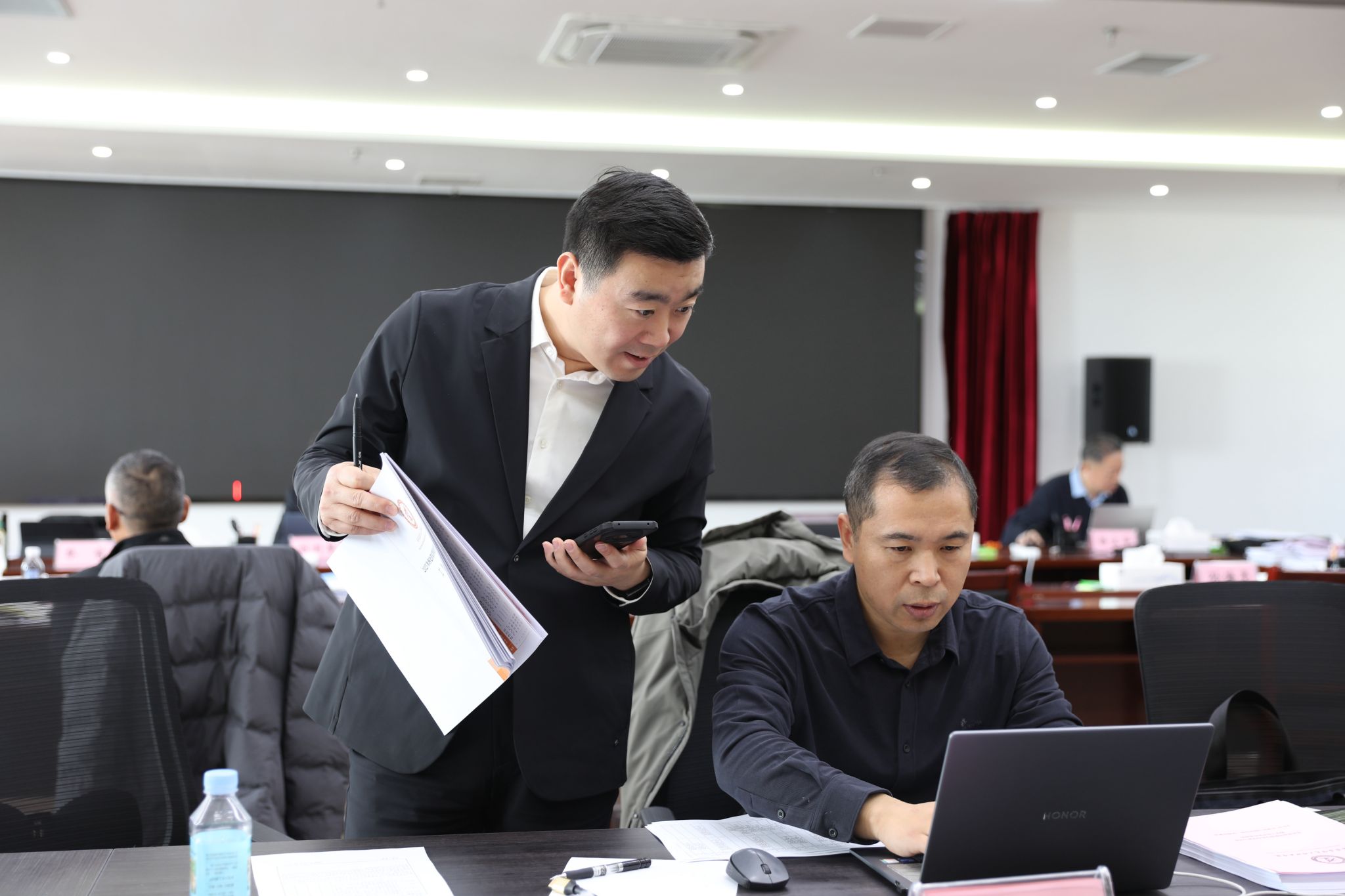 学院各行政处室、教辅部门负责人,各系(院、部)书记、主任参加现场考察见面会和考察意见交流会。