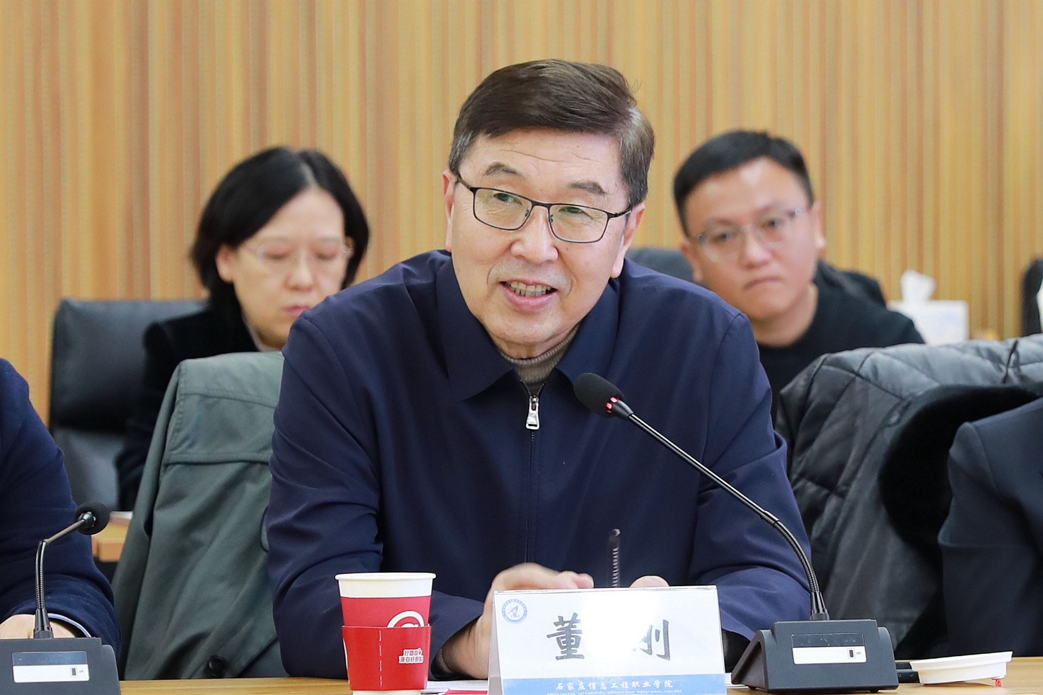 22日上午,专家组现场考察见面会在启智报告厅举行。河北省教育厅二级巡视员、职成教处处长张化平出席见面会并讲话。学院党委书记赵立芬致辞,院长许征程主持并作情况汇报。省教育厅职成教处副处长李辉及学院领导班子、全体中层干部参加。