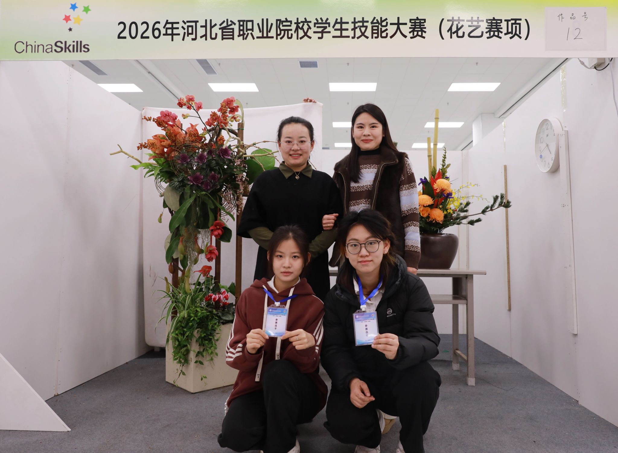 2025年12月29日至30日,2026年河北省职业院校技能大赛(花艺赛项)在世界杯官网成功举办。来自全省的12支参赛队伍、24名选手齐聚一堂,以花为媒、同台竞技。世界杯官网农林牧医系学生李新月、鲁婧媛组成参赛团队,由苏蓓蓓、贾艳晶老师指导,深耕传统与现代花艺的融合之道,凭借独特创意、娴熟技艺与出色审美,稳定发挥、默契配合,最终斩获“花艺”赛项一等奖。