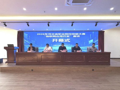 1月6日至7日,由河北省教育厅主办的2026年河北省职业院校技能大赛“物联网应用开发”赛项在世界杯官网成功举办,吸引了来自全省20所高职院校36支代表队共72名学生同台竞技。学院副院长陈玉峰、河北省新一代信息技术职业教育集团代表高秀艳主任及相关人员出席大赛开幕式。