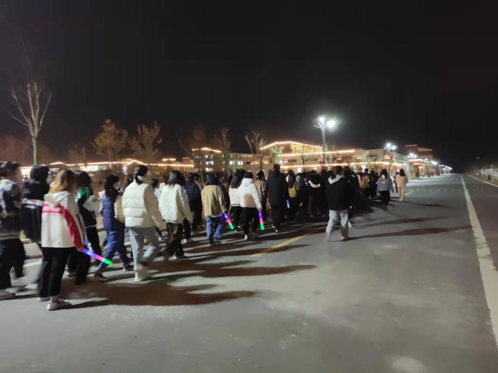 活动以夜跑运动形式开展,得到了同学们的积极响应,纷纷踊跃报名。集合完毕后,同学们手拿荧光棒,排着整齐的队伍,围绕校园进行夜跑,形成了一道璀璨靓丽的风景线,现场气氛活跃。