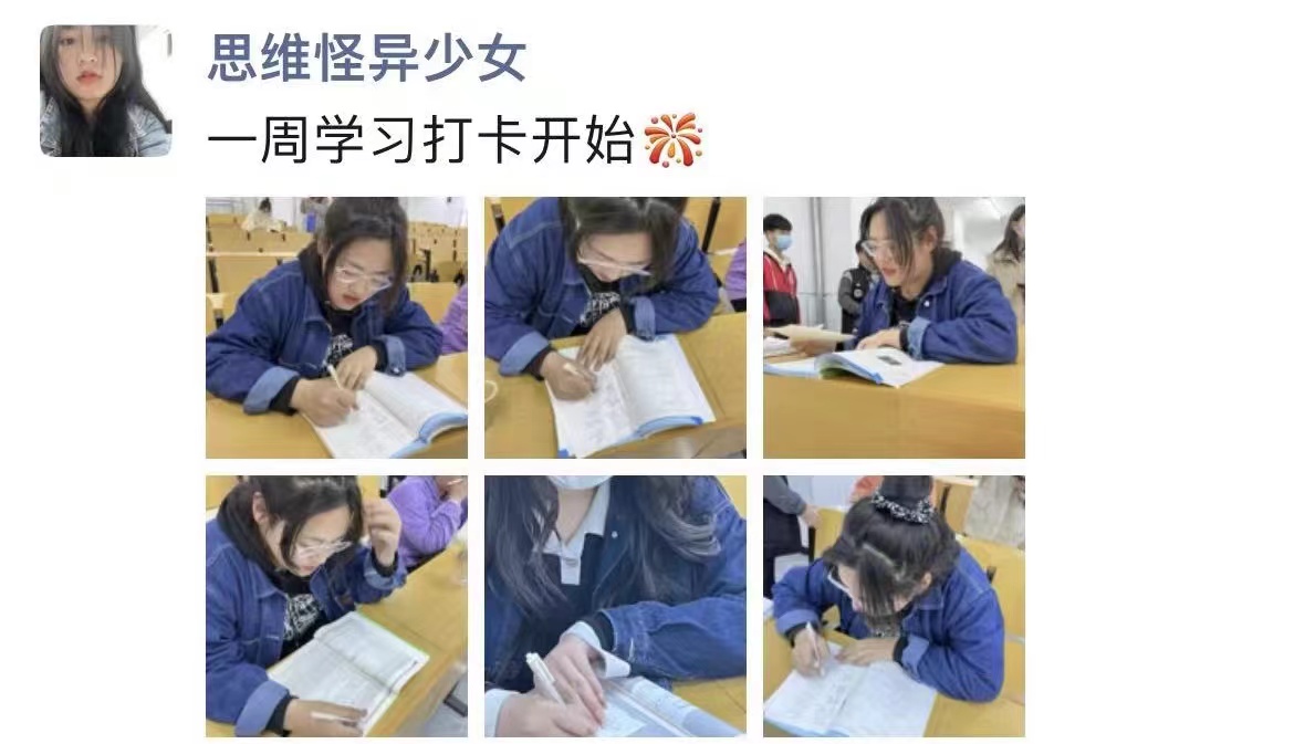 活动倡议全系学生以“文明健康 积极向上”为主题,开展健身打卡、卫生打卡、学习打卡、文明习惯打卡等系列活动,鼓励大家通过朋友圈、QQ空间等线上方式分享自己的坚持与努力,为同学们搭建一个互相督促和交流的平台,帮助大学生在学习生活中养成良好习惯,收获成长、学会坚持,不负青春、不负韶华。