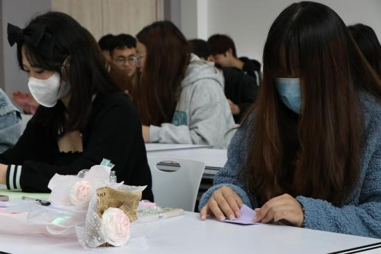 活动现场,同学用卡片亲手为母亲折叠花束,一朵朵花束倾注着对母亲的爱。随后,同学们在便利贴上写下对母亲的感谢与祝福,把朴素的言语化为温馨的行动,传送最真挚的感情。最后,同学们将自己的“祝福”贴到黑板上,大胆地向妈妈展示爱。