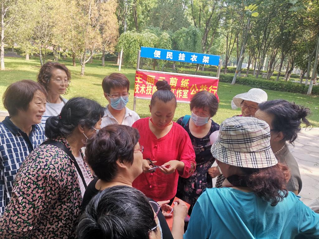 6月27日下午,传媒艺术系王丽云剪纸技术技能大师工作室团队来到石家庄世纪公园,为来自石家庄市老年大学的学员们献上了一堂生动的剪纸课程。
