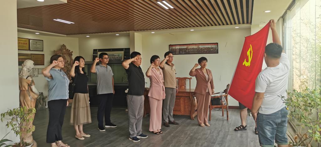 为增进与校友之间的联系,进一步推进就业创业工作,发挥校友在人才培养中的作用,7月1日,传媒艺术系书记庞超、副主任袁立敏等一行10余人赴新乐市走访我系优秀校友、村党支部书记曹路遥,参观其创业企业——河北伊甸园园林雕塑工程有限公司,并联合开展“庆祝建党101周年”重温入党誓词活动。