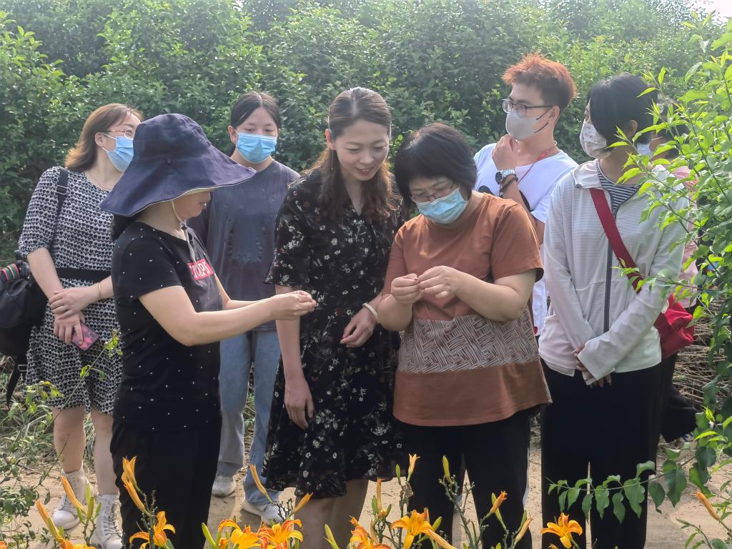 农林牧医系“三下乡”社会实践团与河北省林科院对接,聚焦科技前沿,开展研学活动。林科院的专家为实践团师生详细介绍了园林绿化的重要地被植物——萱草的优良品种引选及栽培技术。讲授了如何通过收集、引进、筛选、繁育,建立多用途萱草品种筛选评价体系、种苗快繁体系及配套栽培管理技术体系,并现场教授了学生萱草的授粉技术。本次研学活动拓展了师生的视野,增长了见识,提升了专业技能。